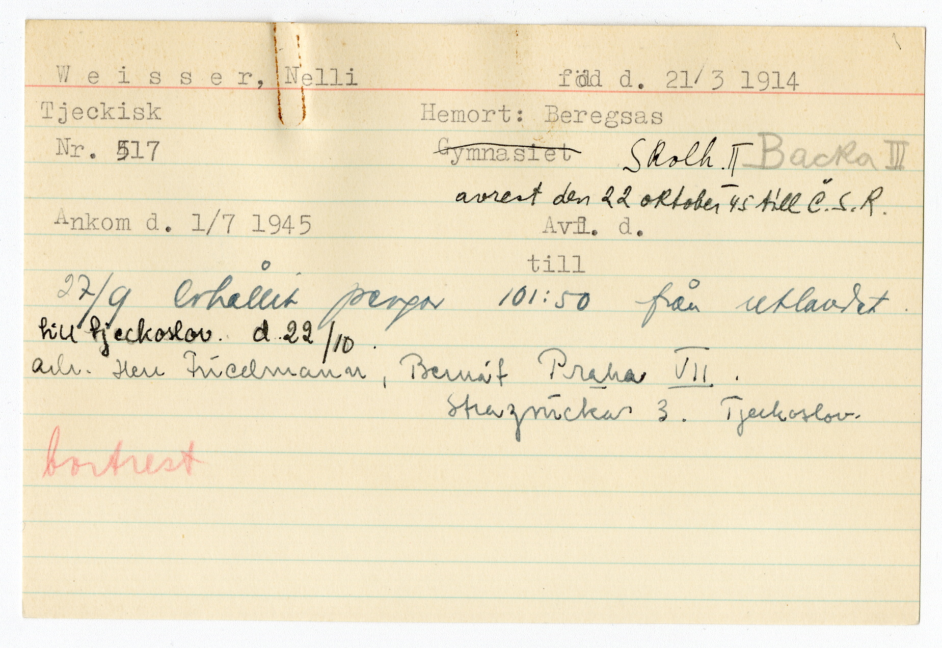 Ett skrivkort med patientuppgifter gällande Nelli Weisser.