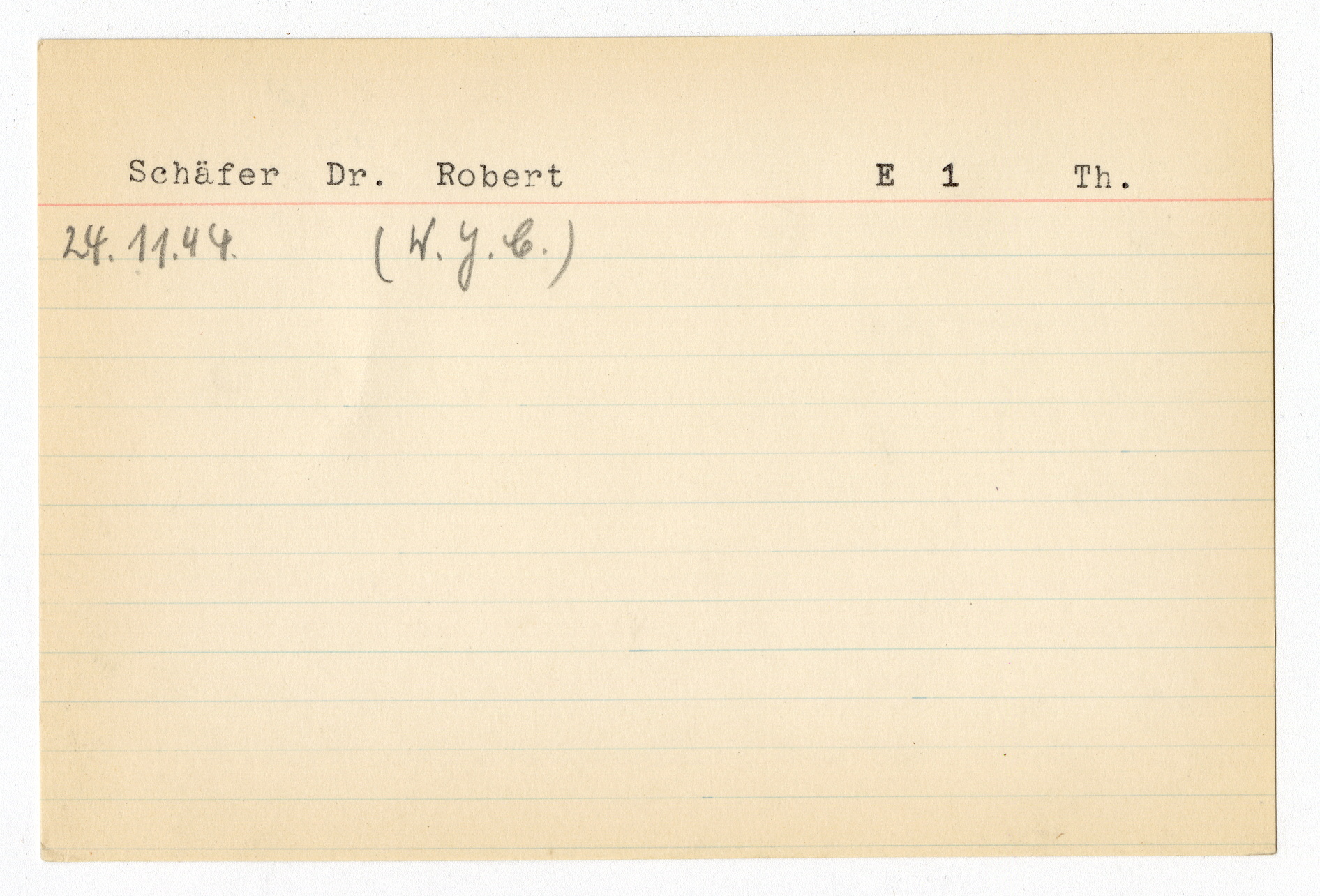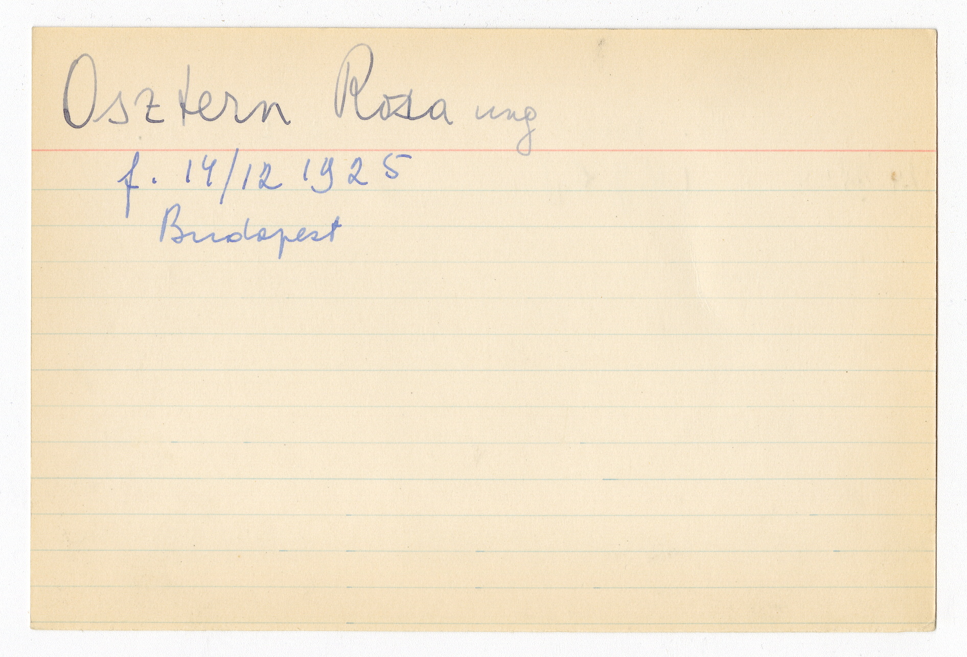 Ett skrivkort med patientuppgifter gällande Rosa Osztern. På baksidan uppgifter om matpaket till Robert Schäfer i Theresienstadt.