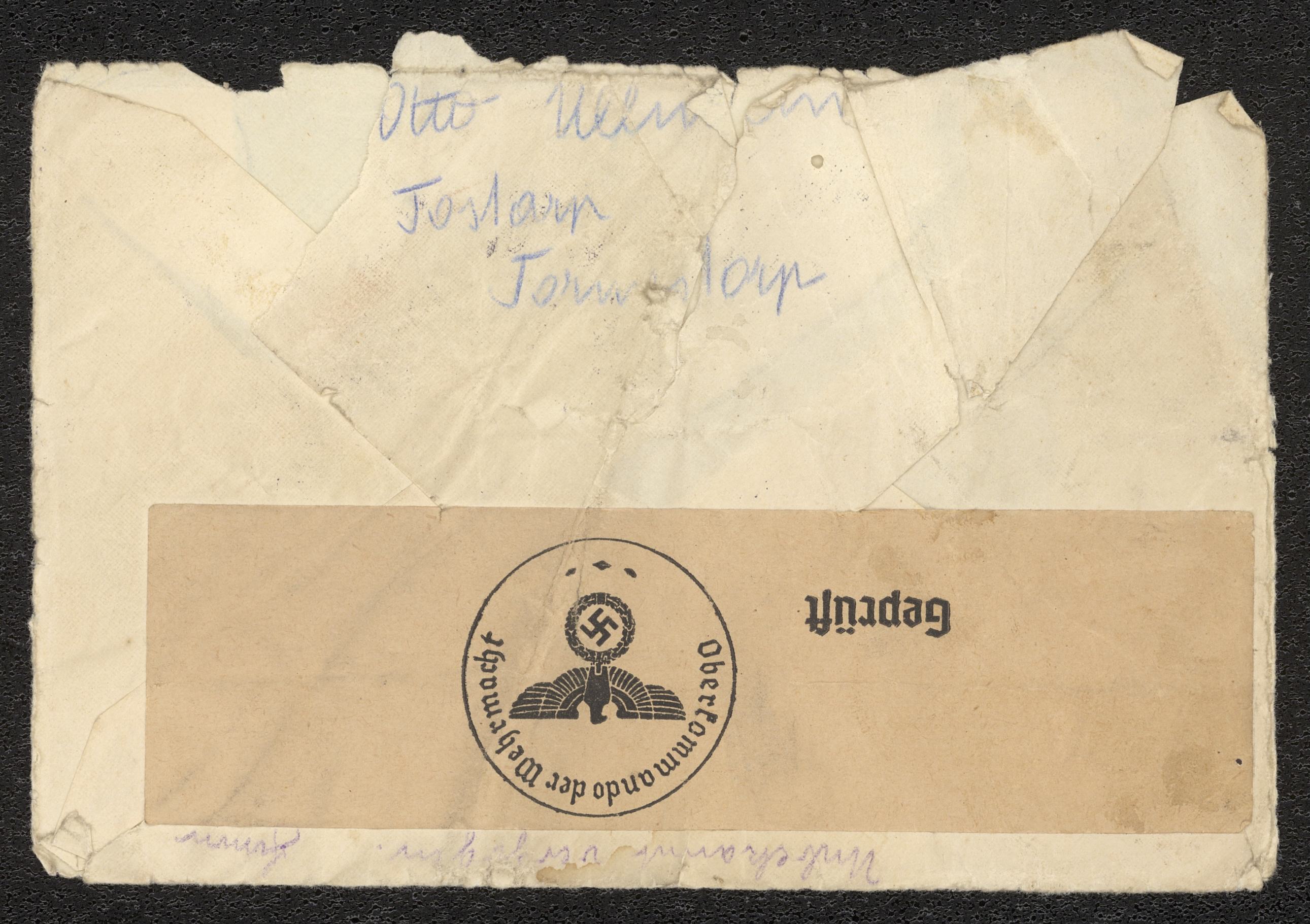 Ett kuvert och brev på fyra sidor
