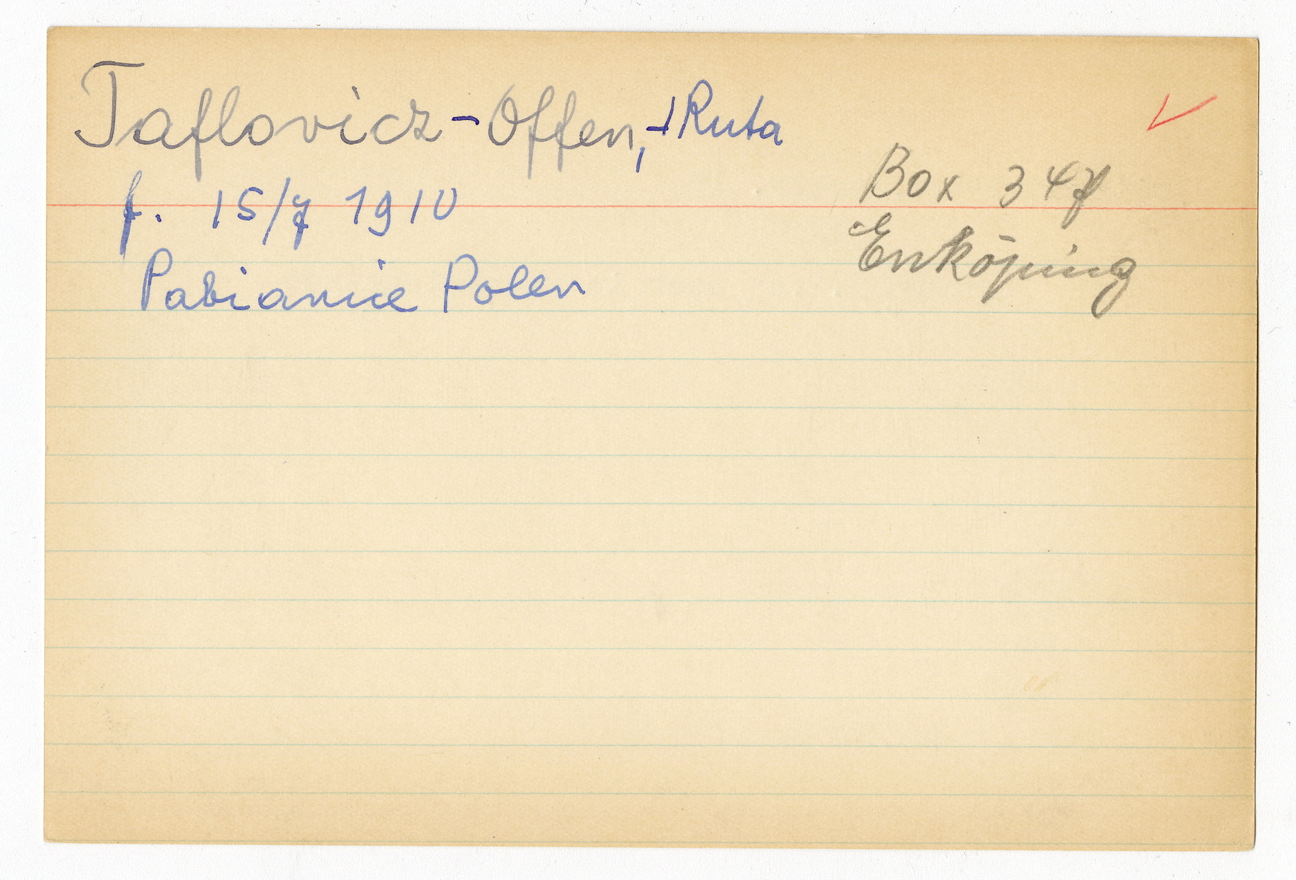 Registerkort Ruta Tafloweiz och Emmerich Spitz