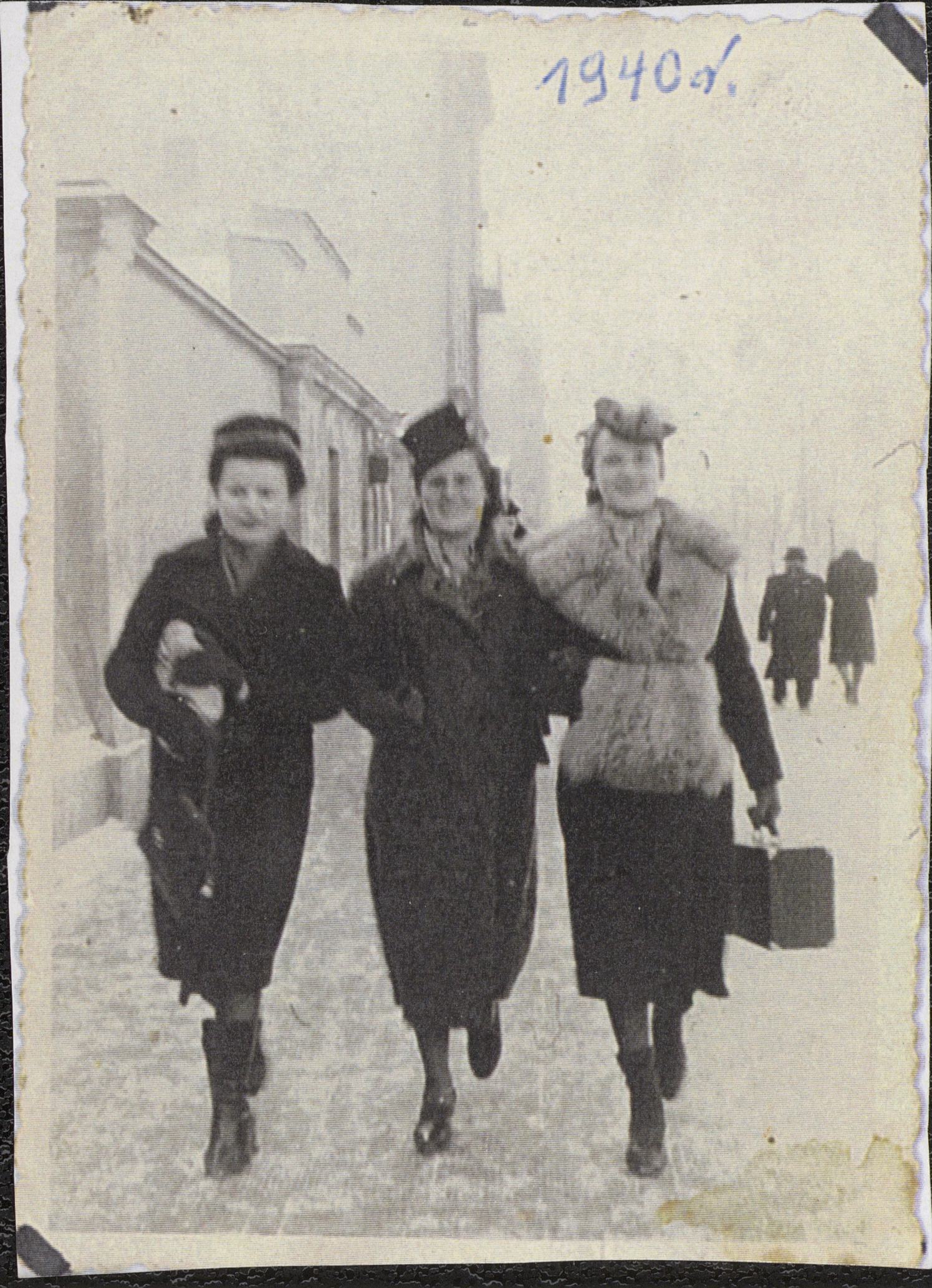 Fotografi sannolikt taget i Warzsawa år 1940. Längst till höger i bild Stanislawa Loniewska (senare gift Szymczak). Namnen på de två kvinnorna till vänster är okänt, men givaren tror att en av kvinnorna skulle kunna vara Stanislawas styvmor. Före krigsutbrottet levde Stanislawa i Warzsawa med sin pappa, styvmor och halvbror.