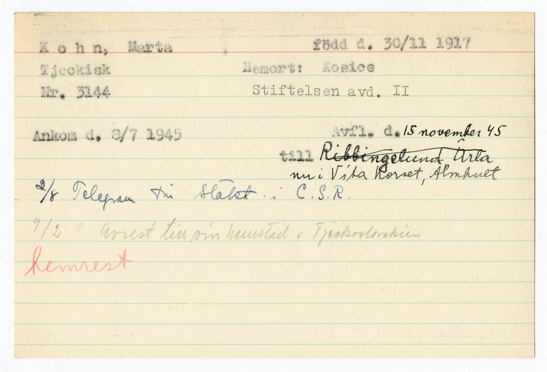 Registerkort Marta Kohn