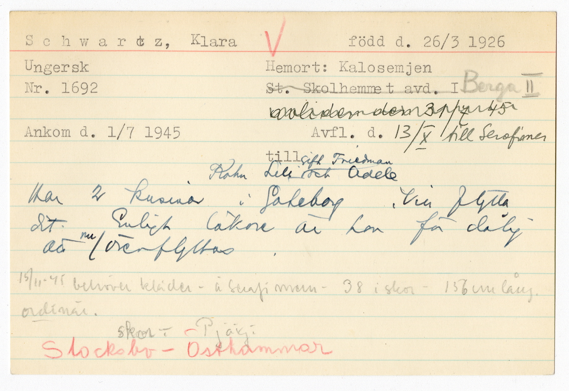 Registerkort Klara Schwartz