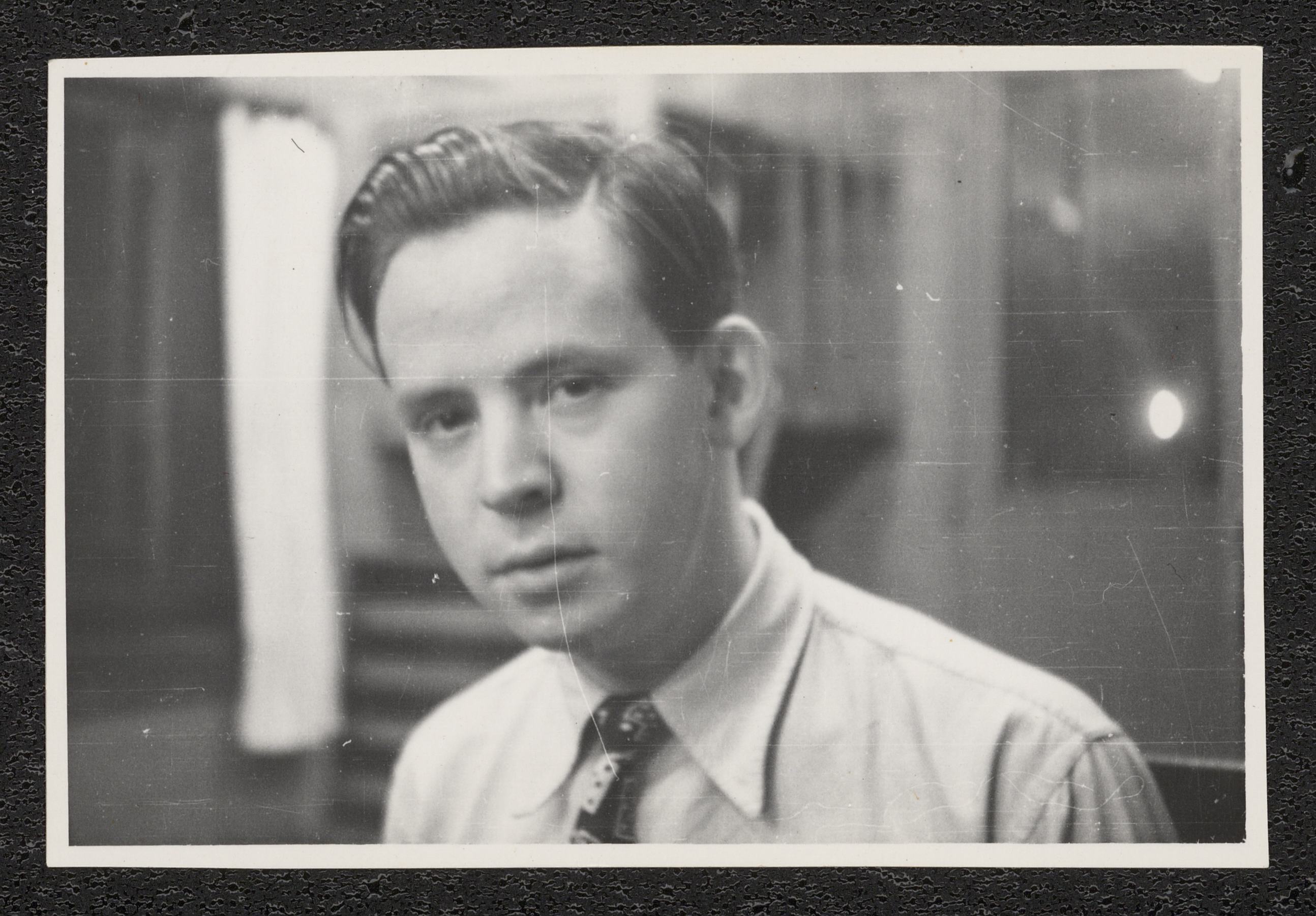 Porträtt av Hasse Goldschmidt. Bilden låg tillsammans med Georg Witts fotorafier från en återträff för överlevande 1954.