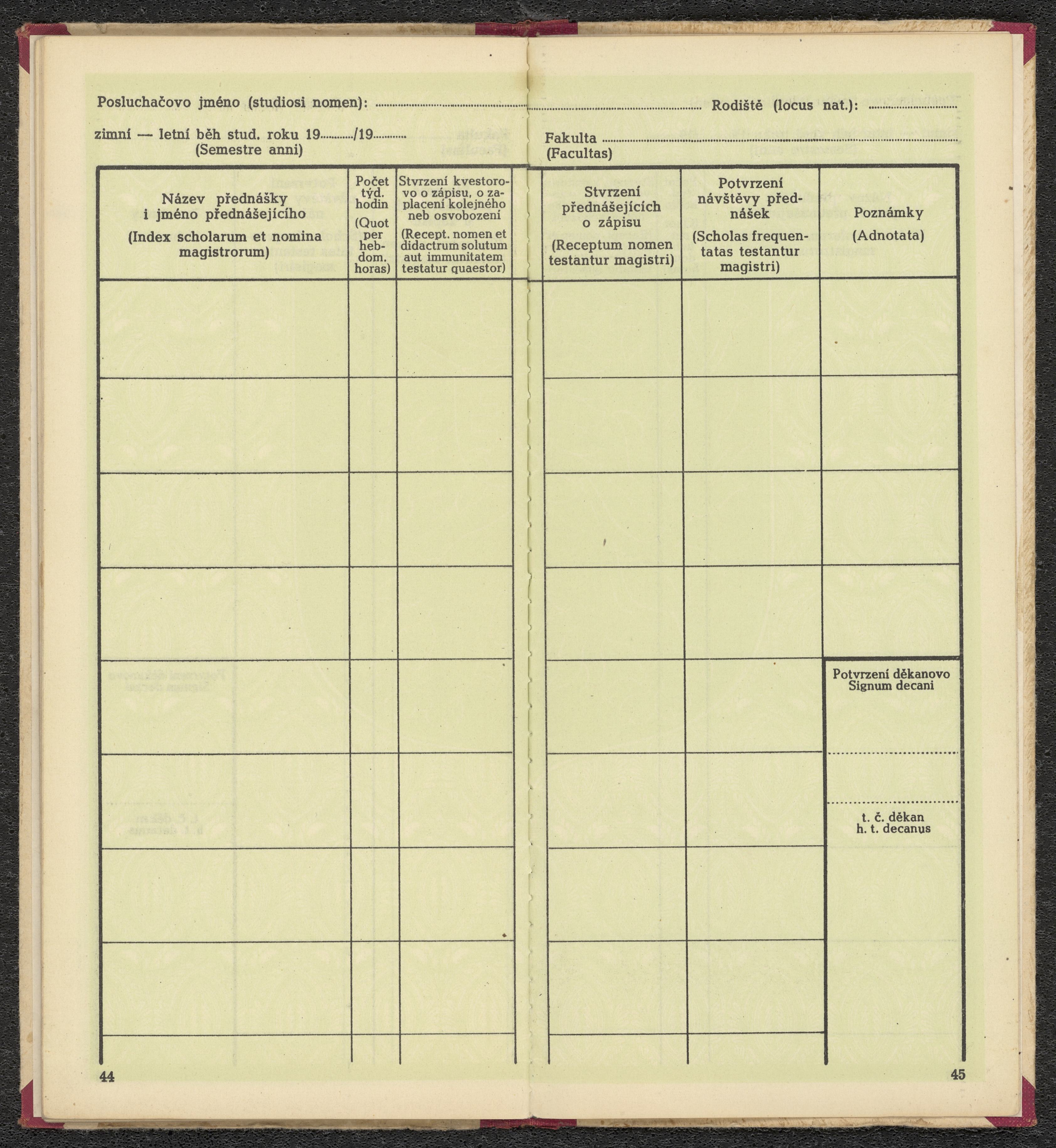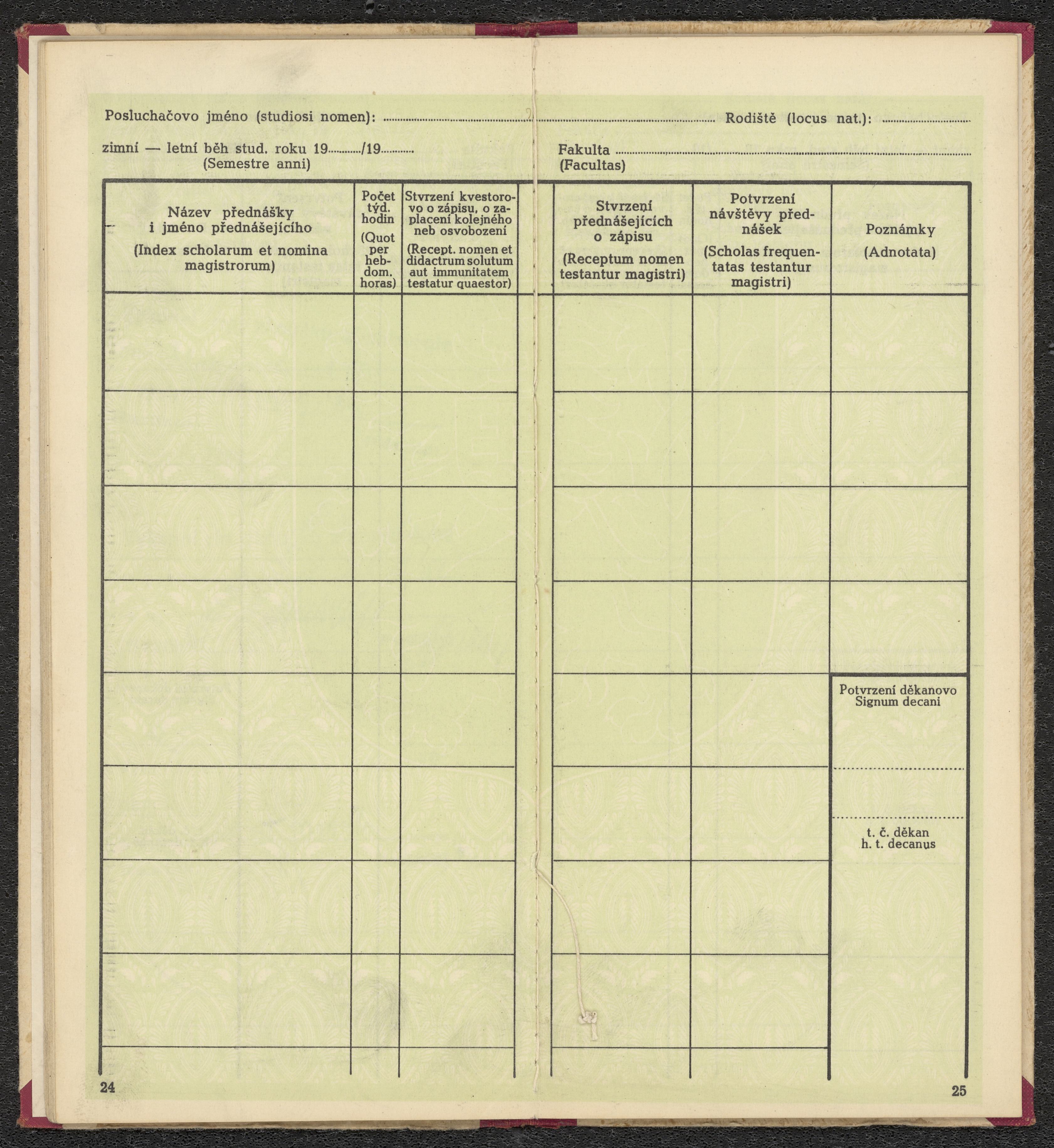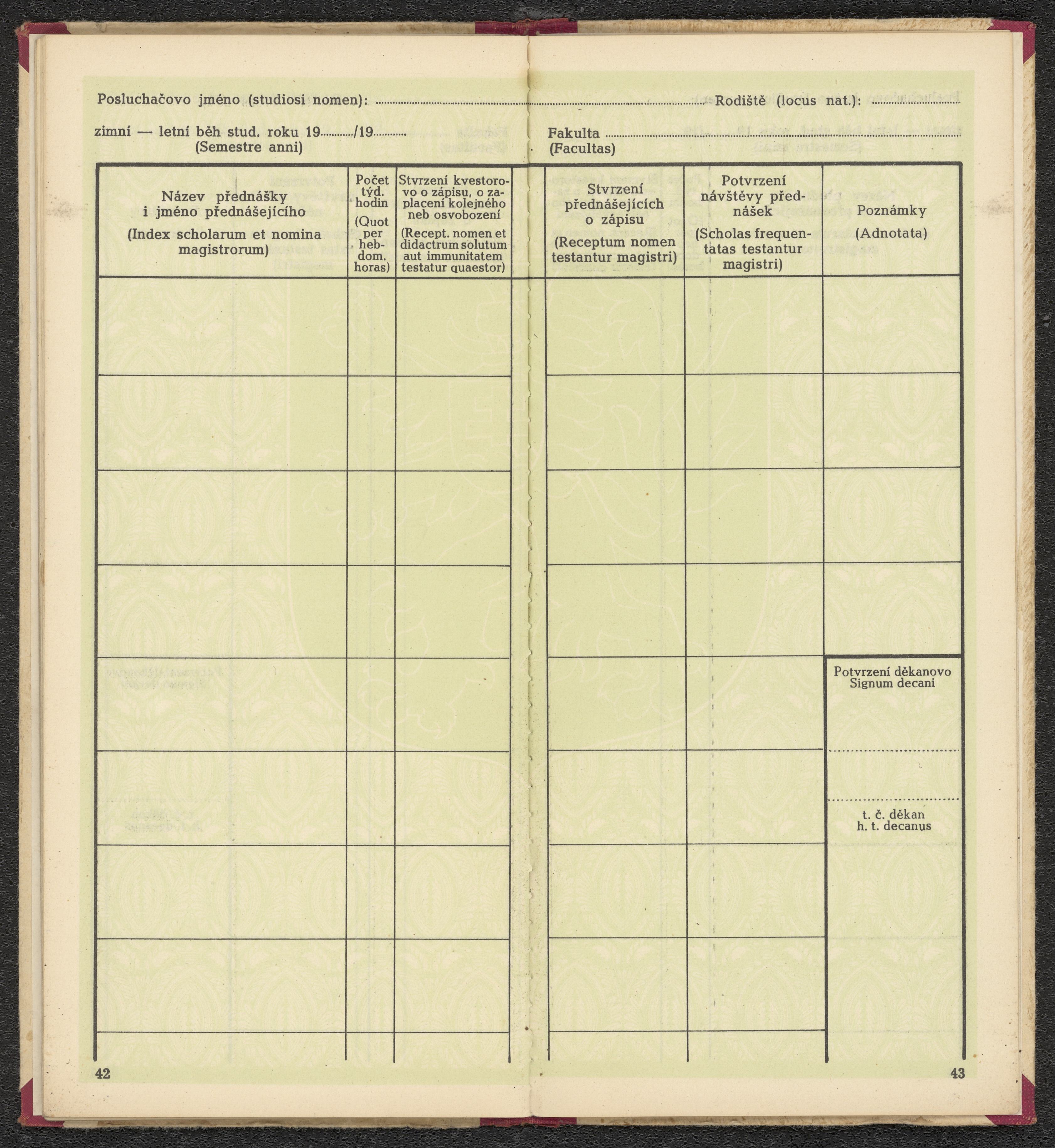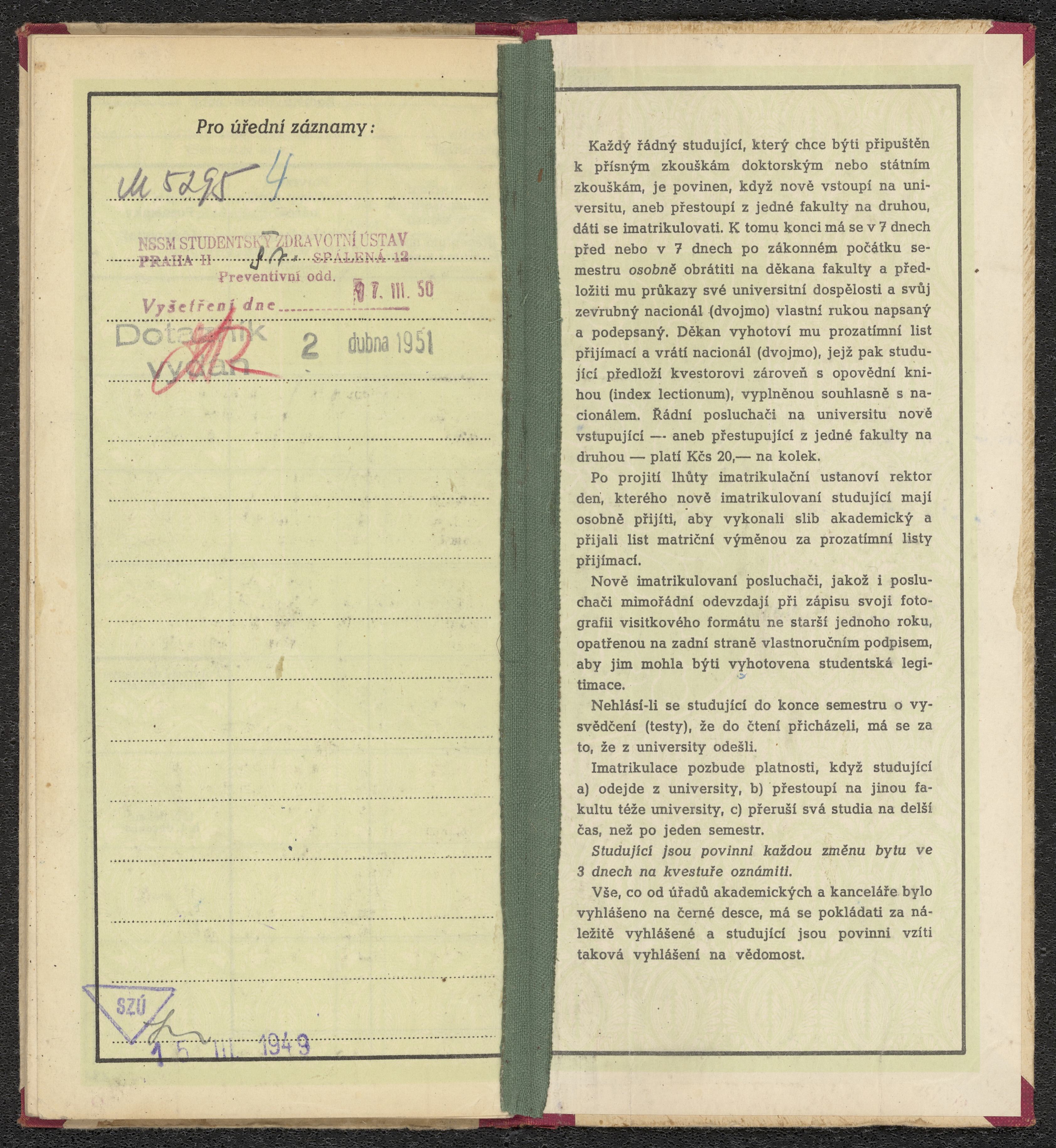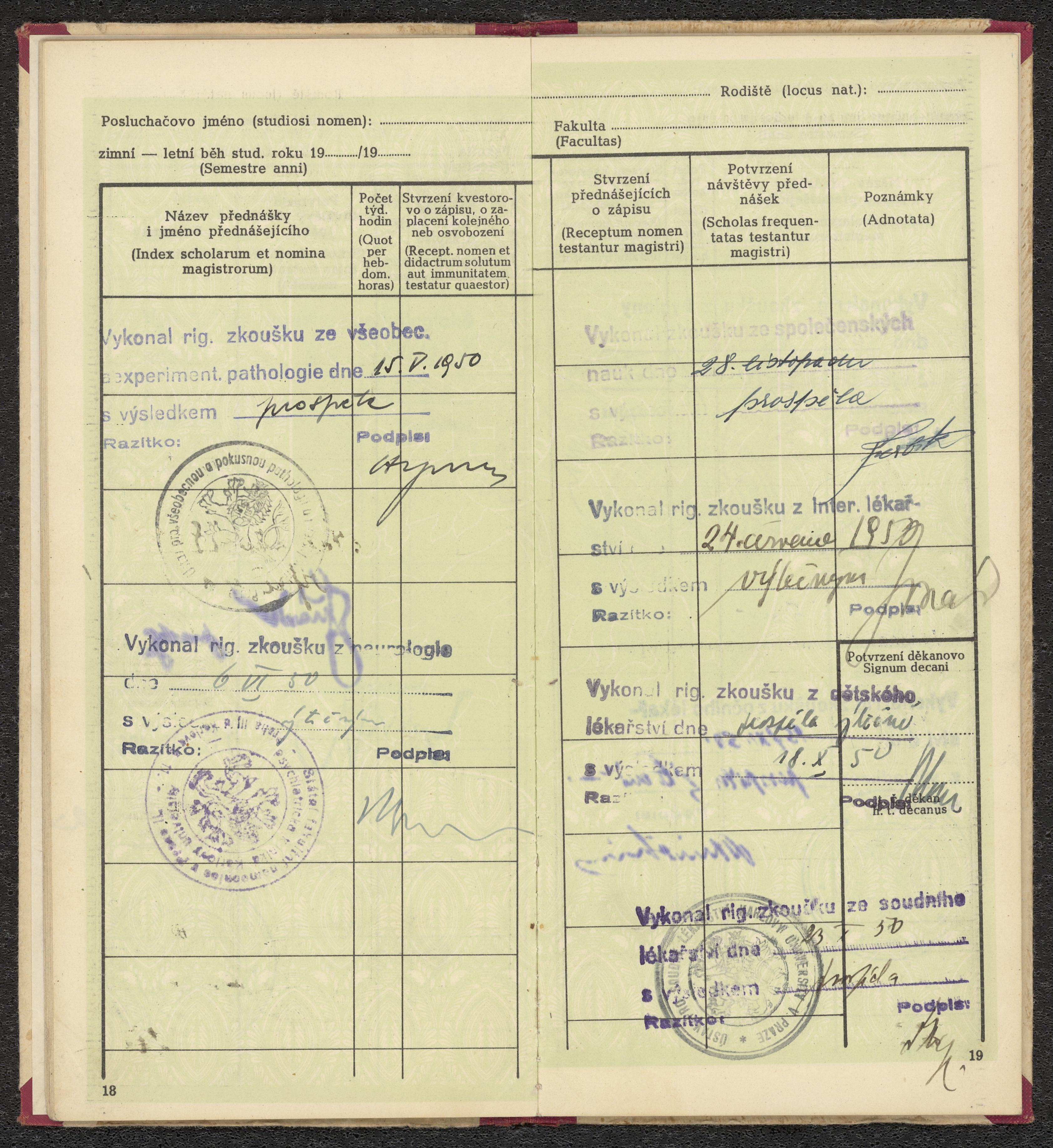 Betygsbok från Universitetet i Prag för Ada Beker (sic.). Utställd 19 november 1948.
