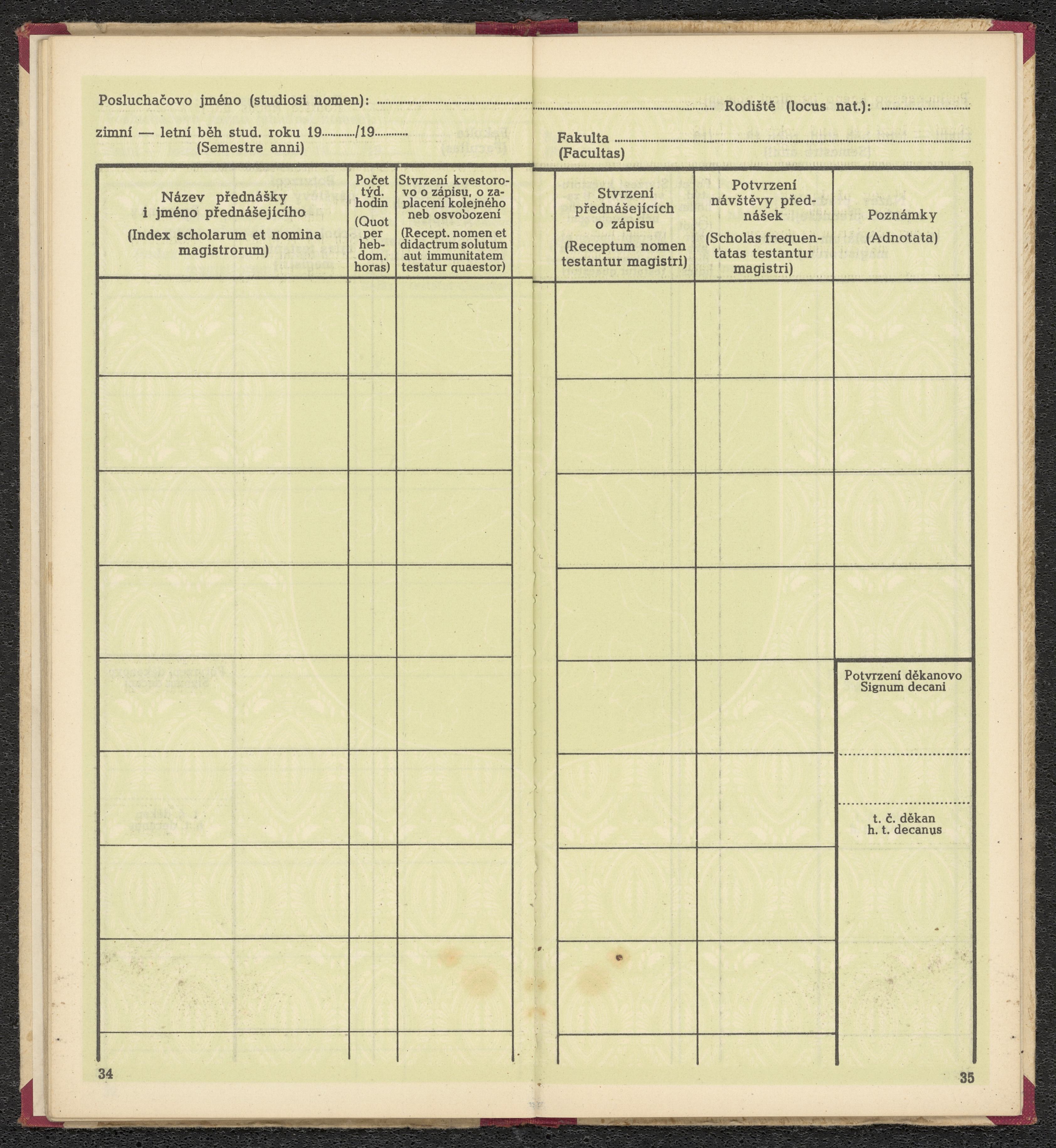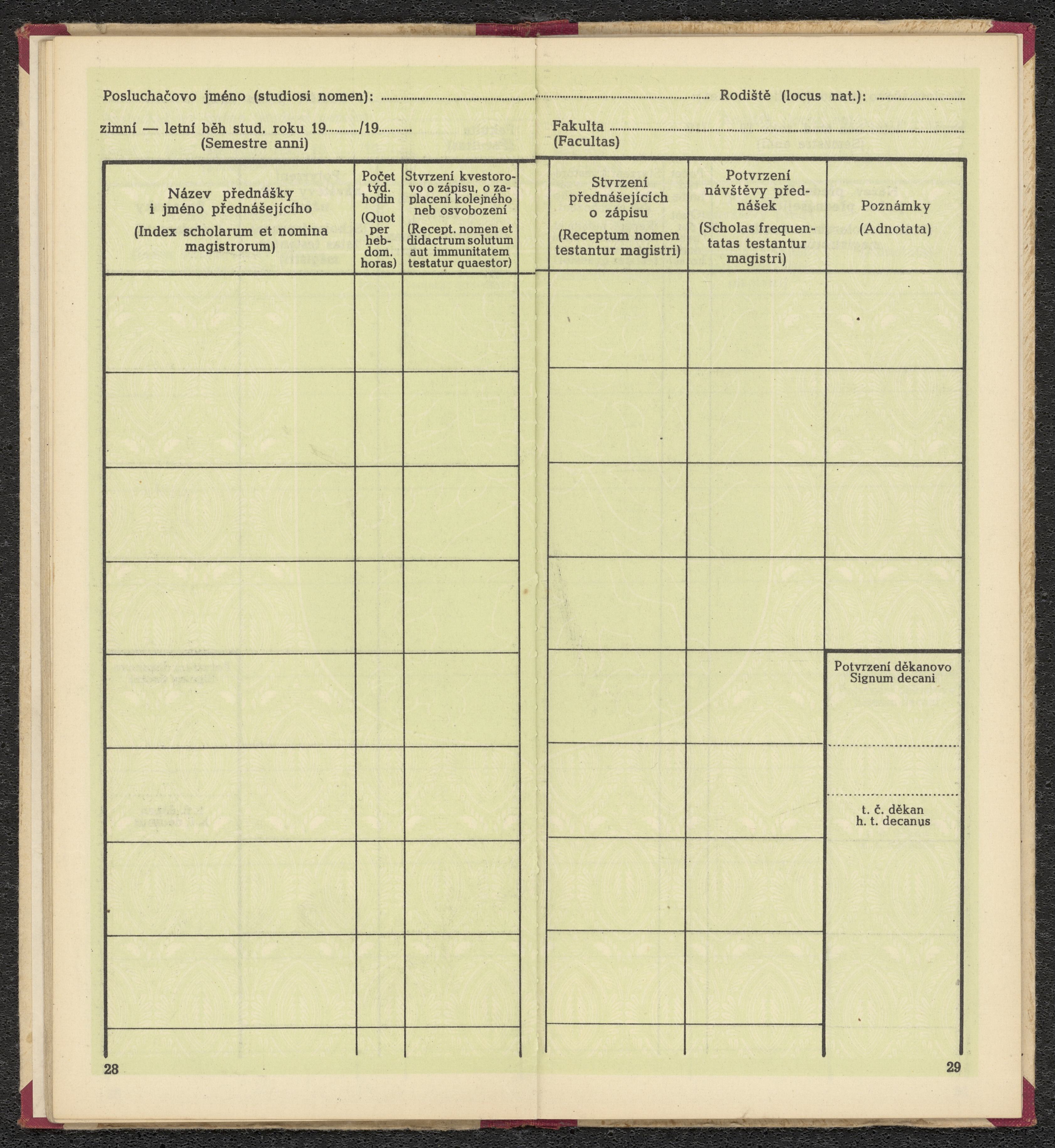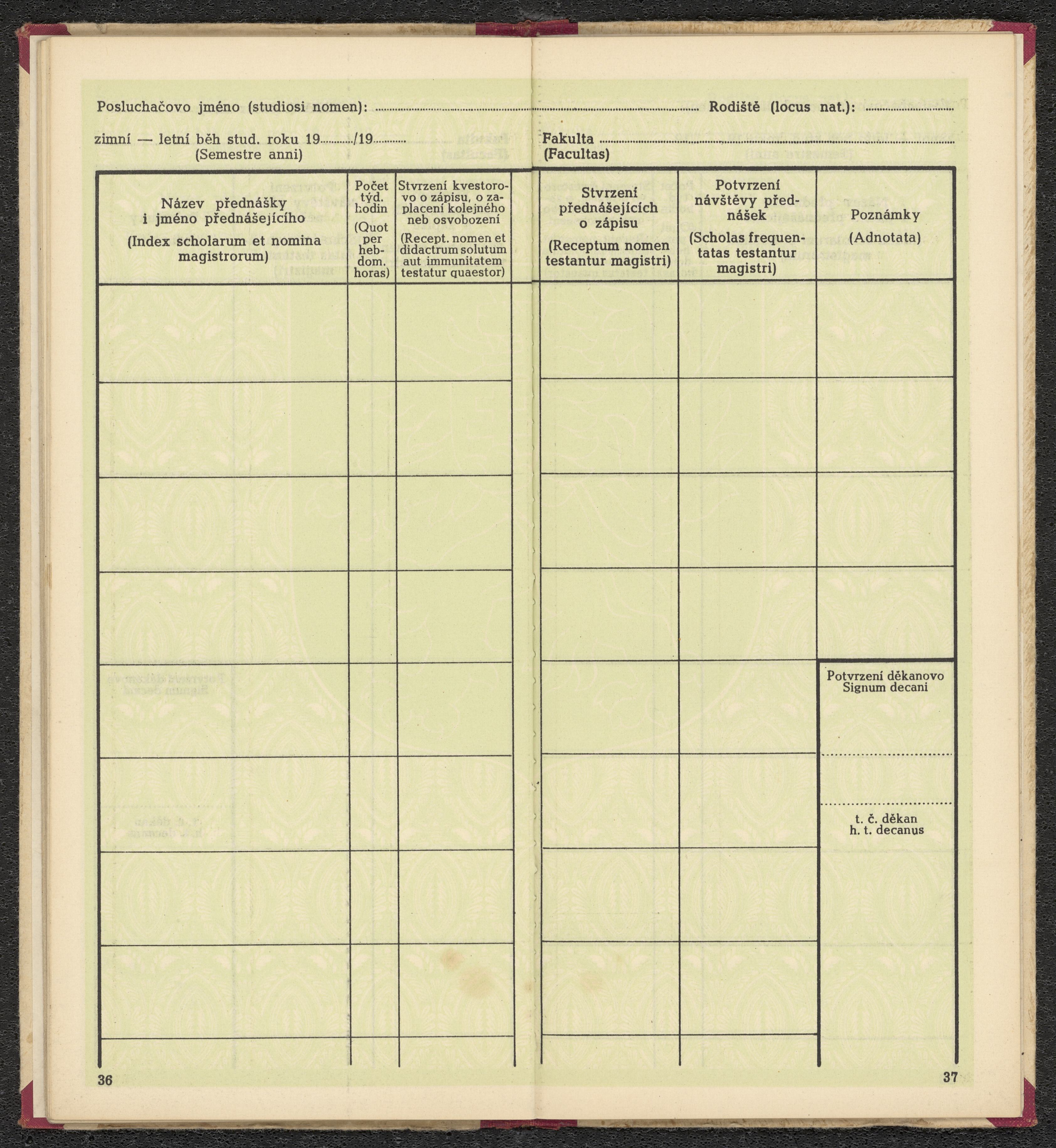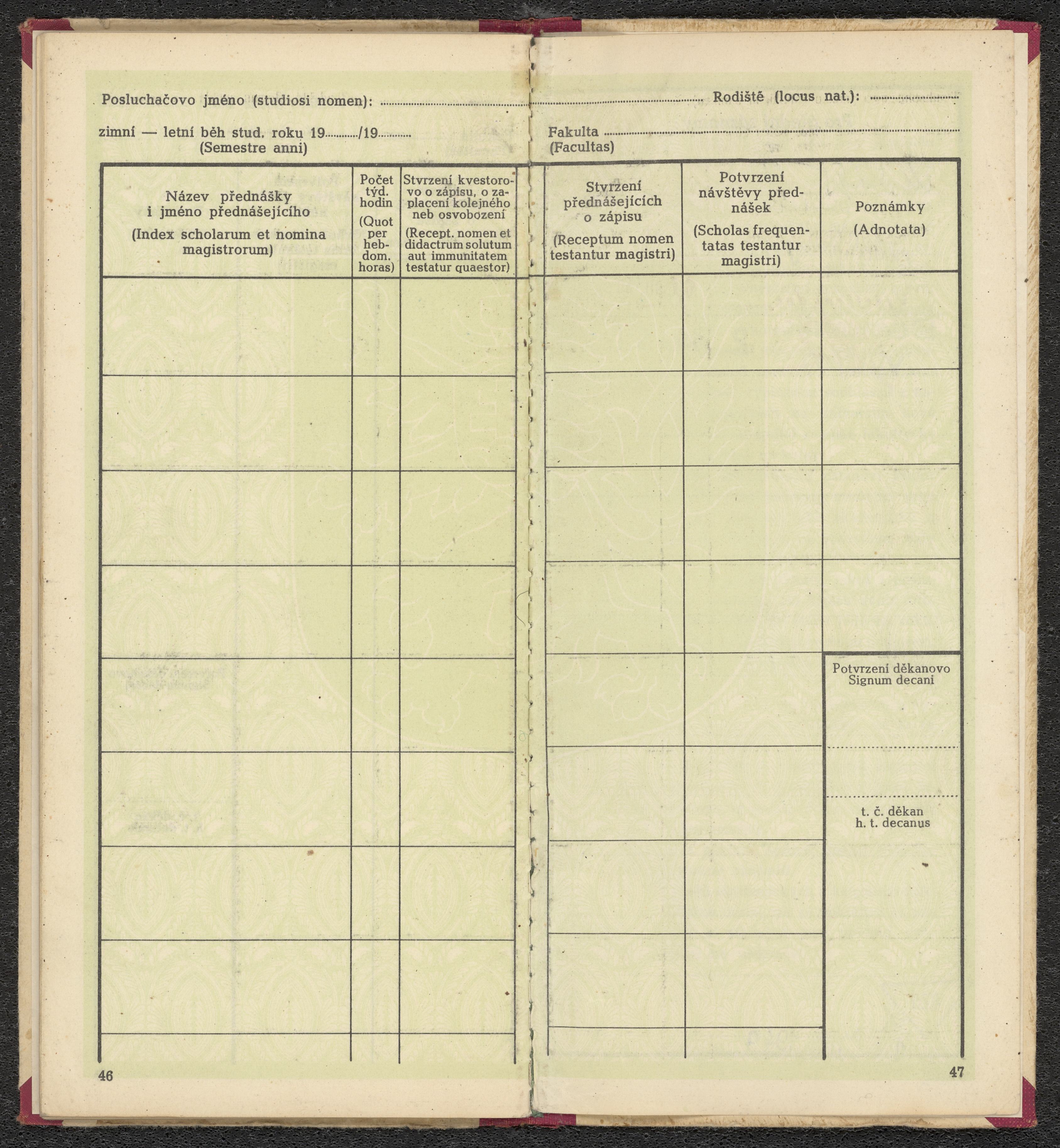 Betygsbok från Universitetet i Prag för Ada Beker (sic.). Utställd 19 november 1948.