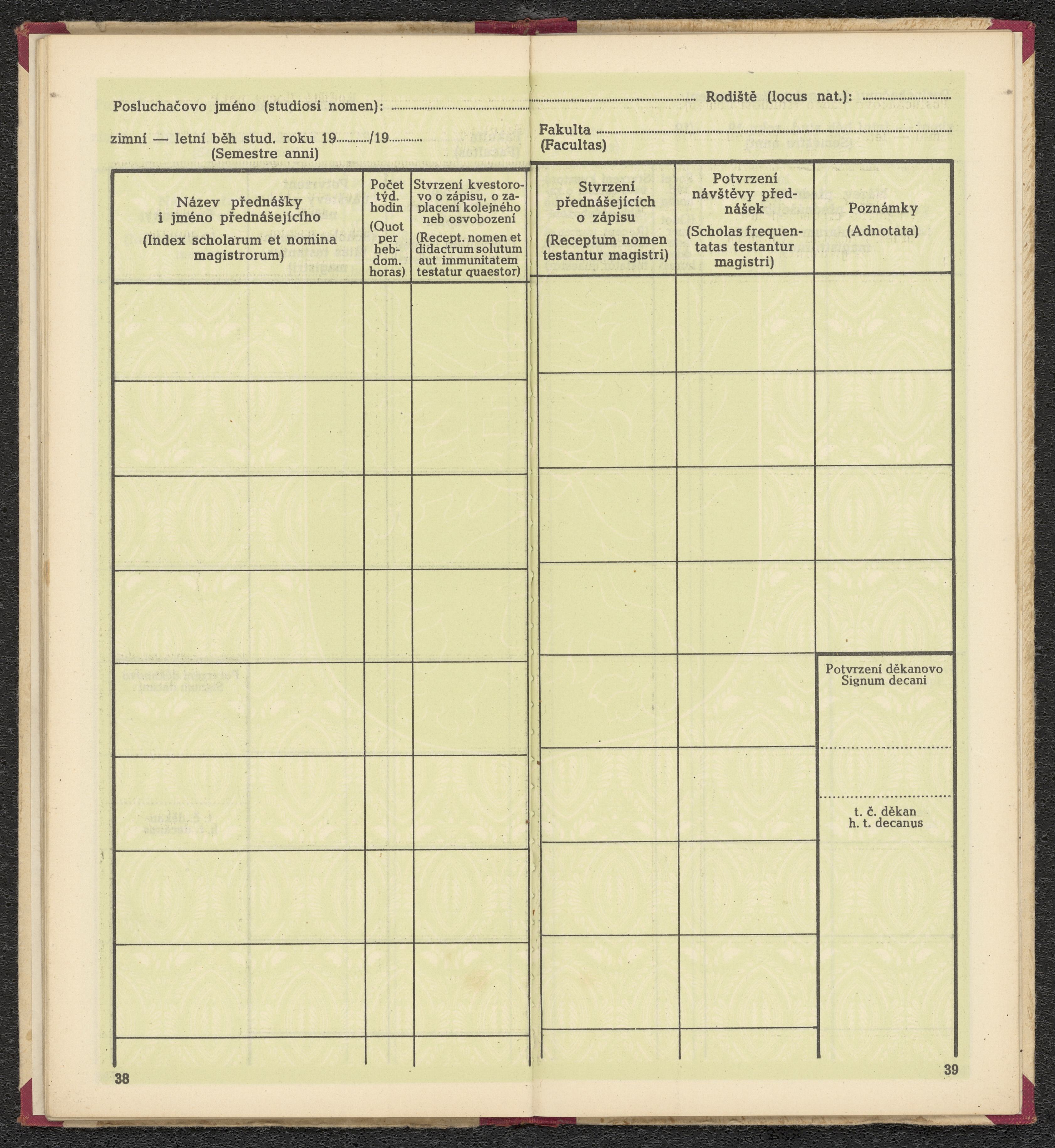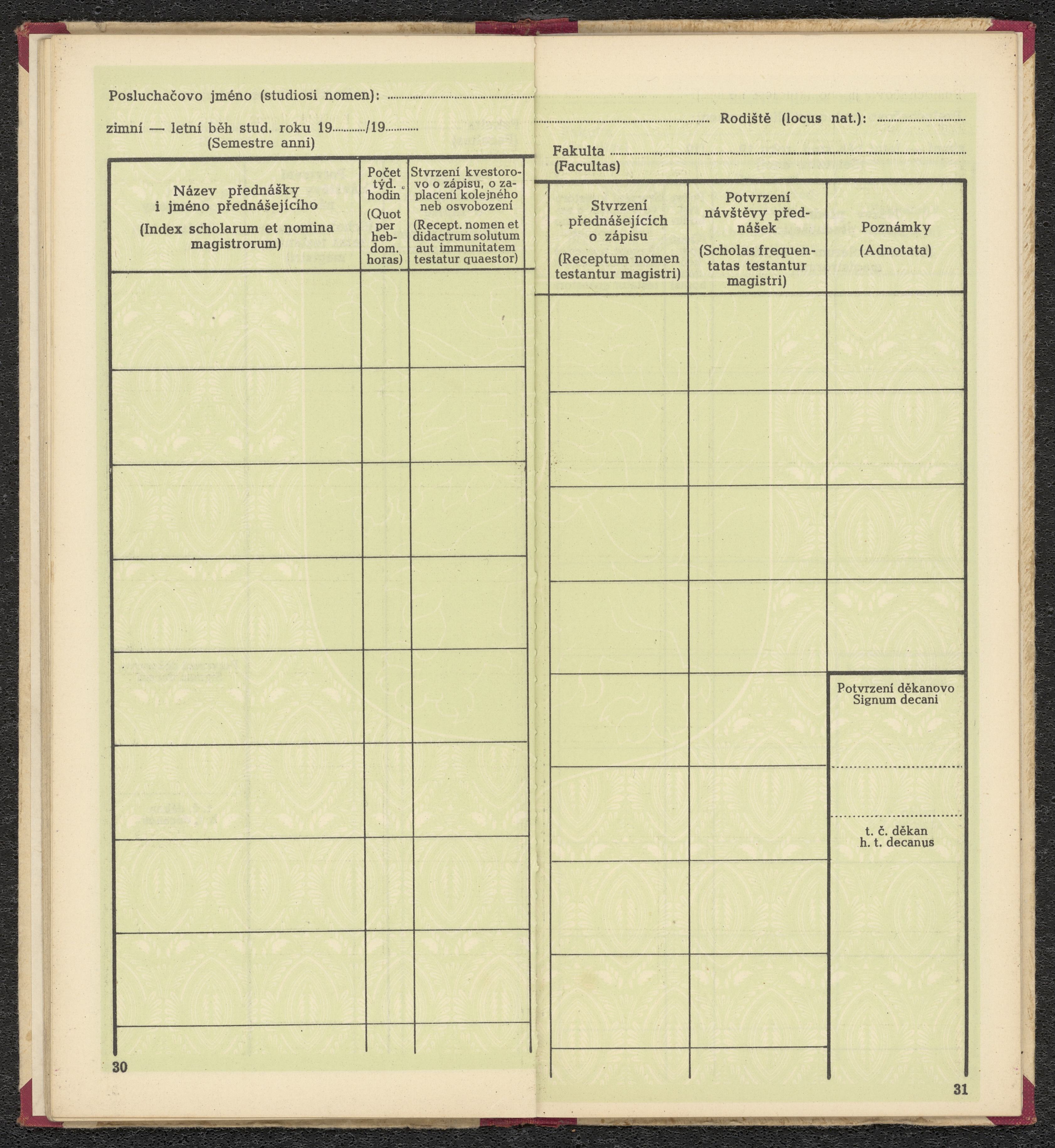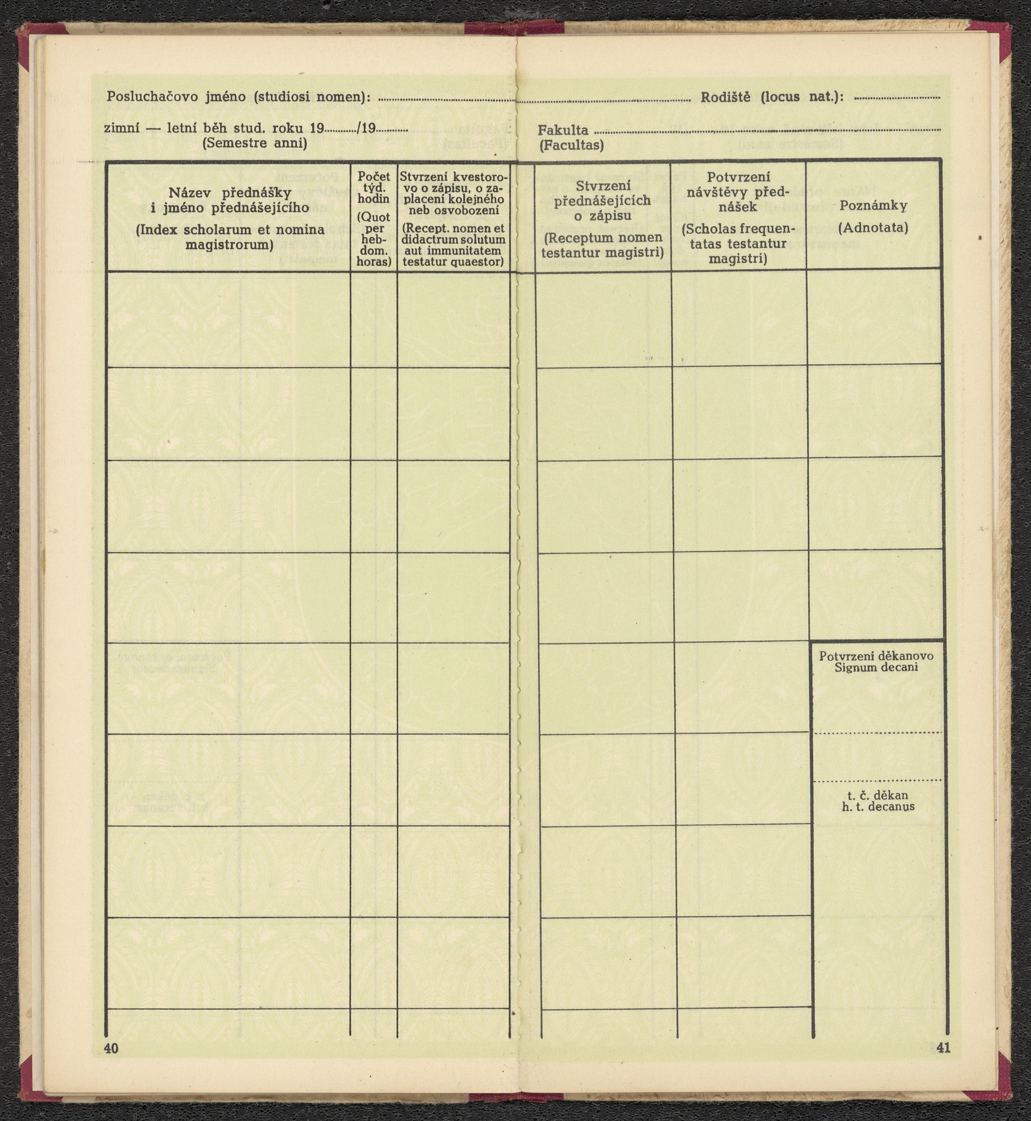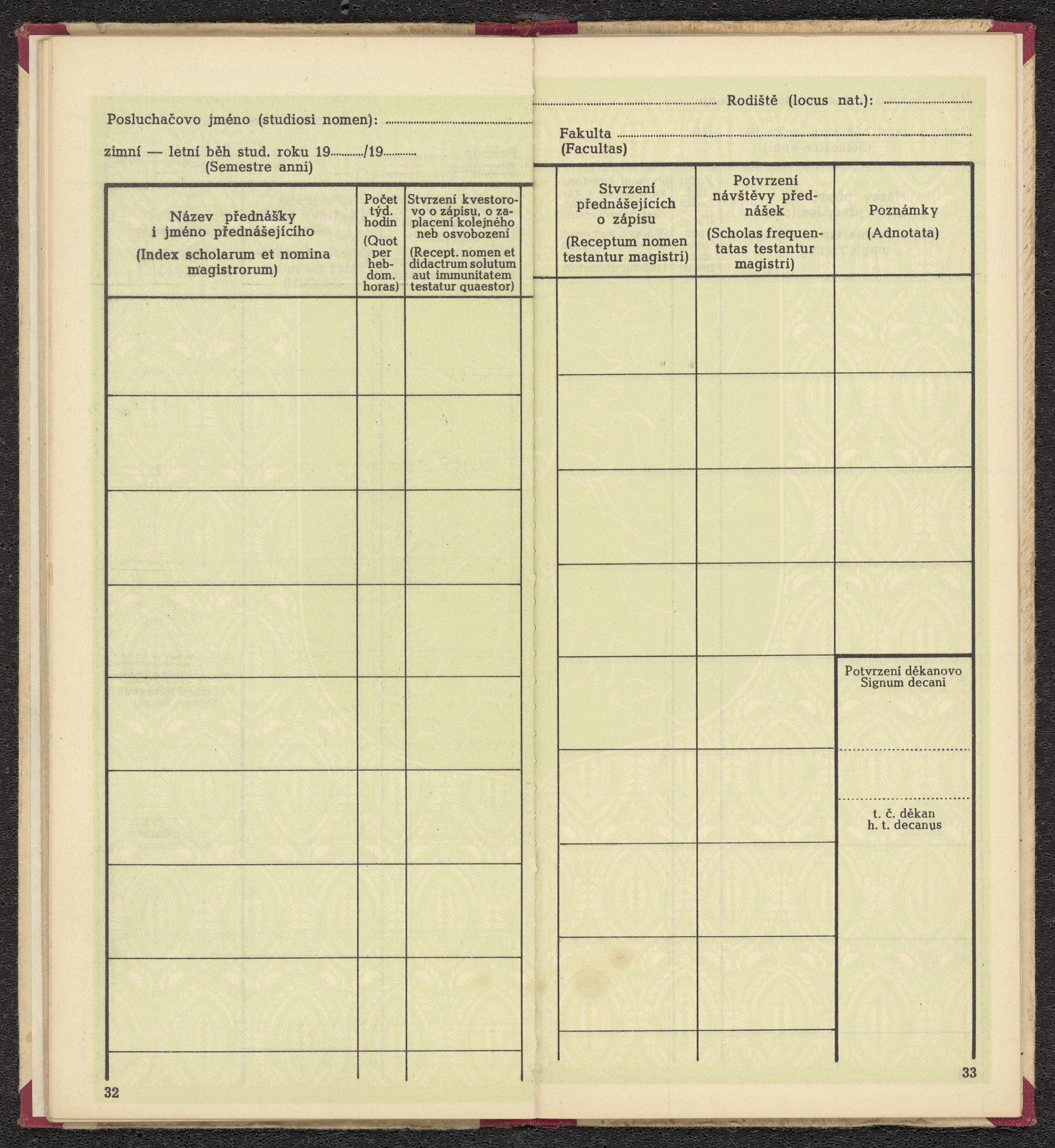 Betygsbok från Universitetet i Prag för Ada Beker (sic.). Utställd 19 november 1948.
