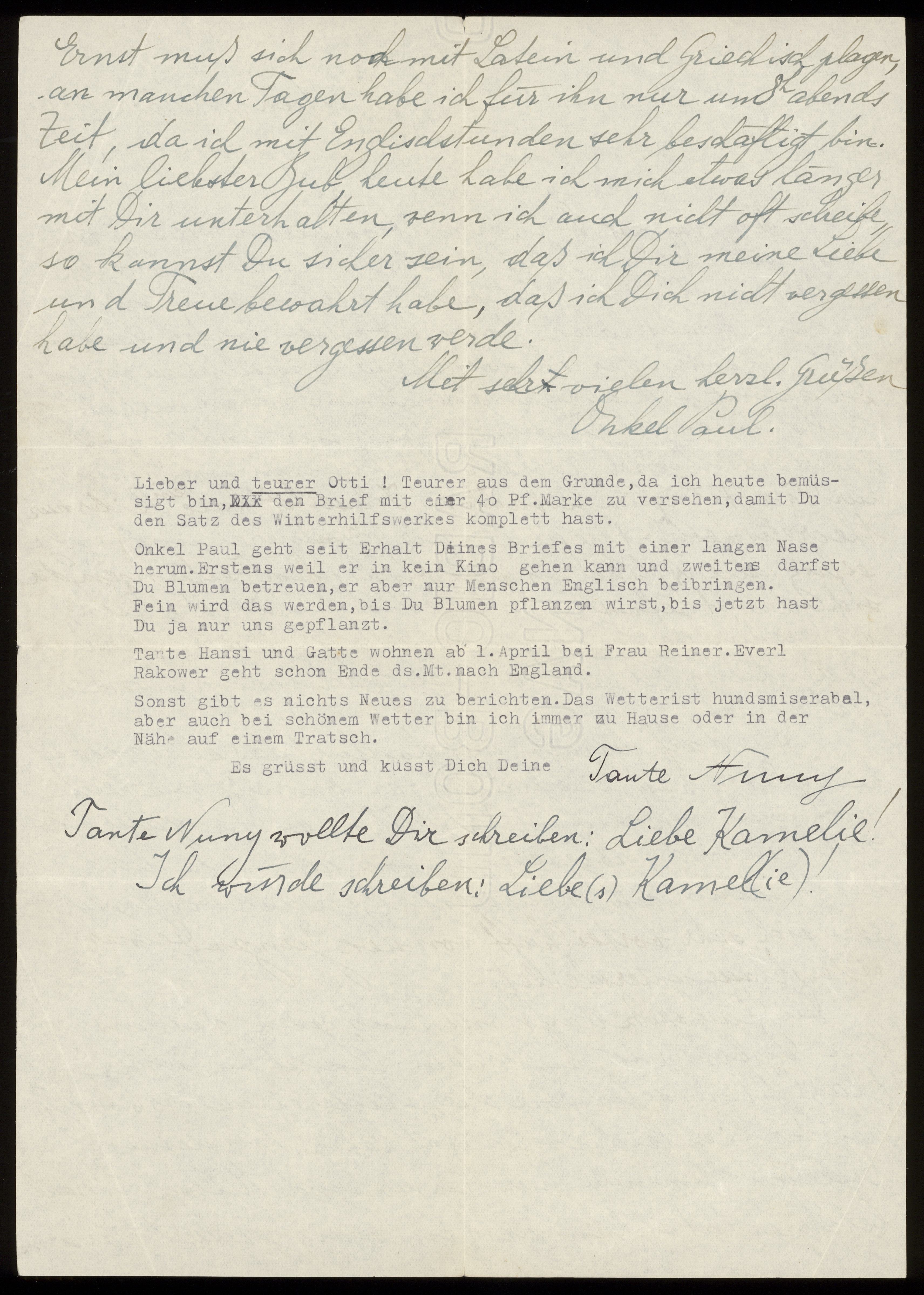 Brev till Otto Ullman från morbror Paul Kollmann och moster Minna "Nuny" Kollmann daterat 16 mars 1939 Wien.