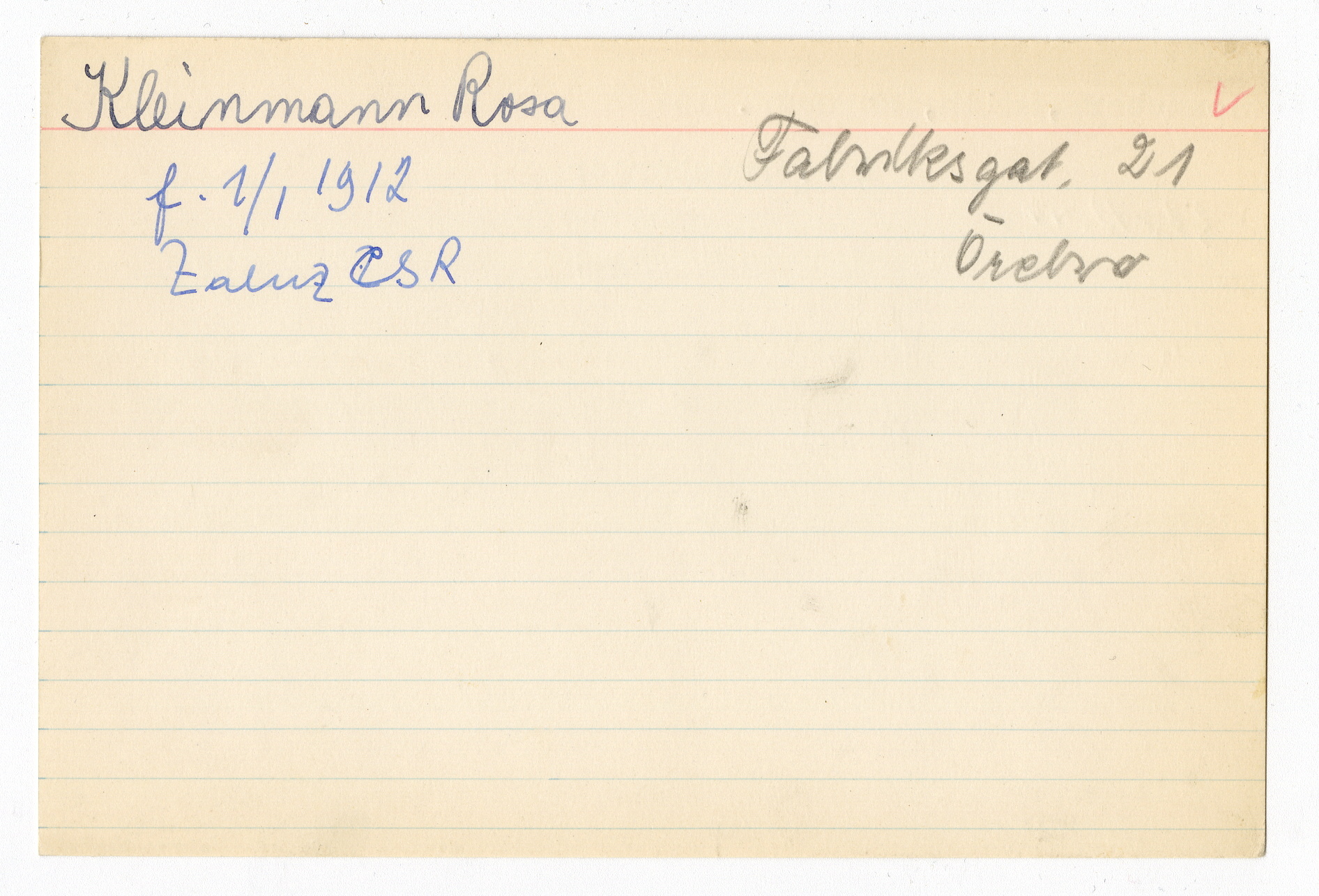 Registerkort Rosa Kleinmann och Edith Sonnenberg