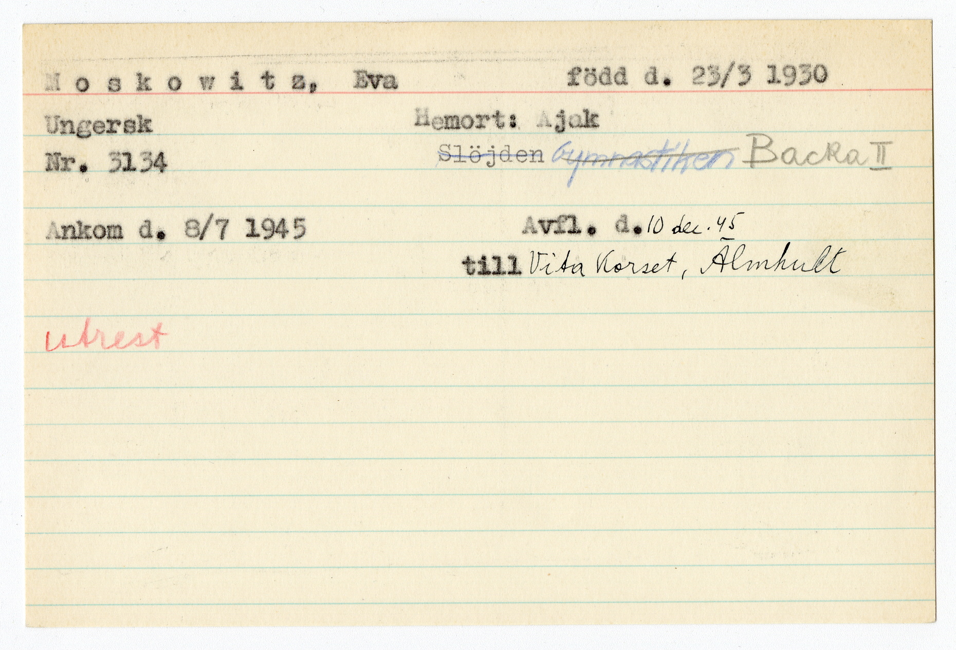 Registerkort Eva Moskowitz