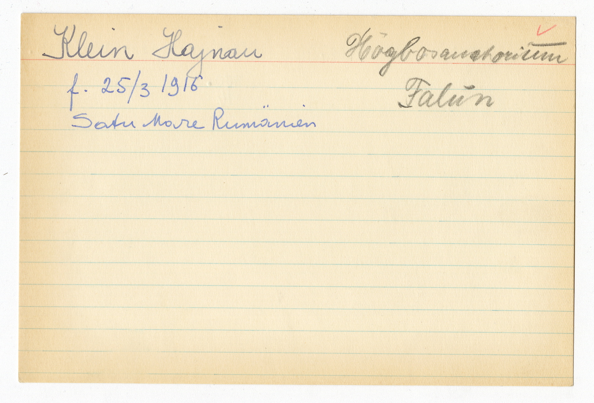 Registerkort Hajnal Klein och Albertine Spier