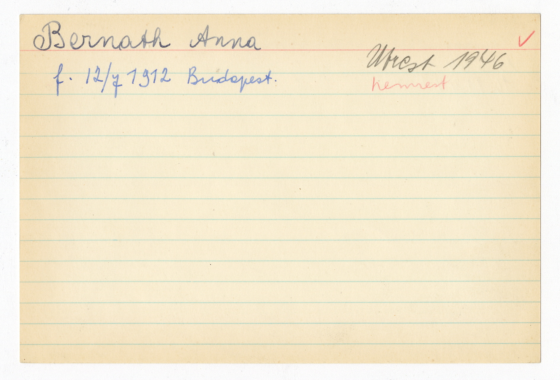 Ett skrivkort med patientuppgifter gällande Anna Bernath. På baksidan uppgifter om matpaket till Cilly Sommer i Theresienstadt.