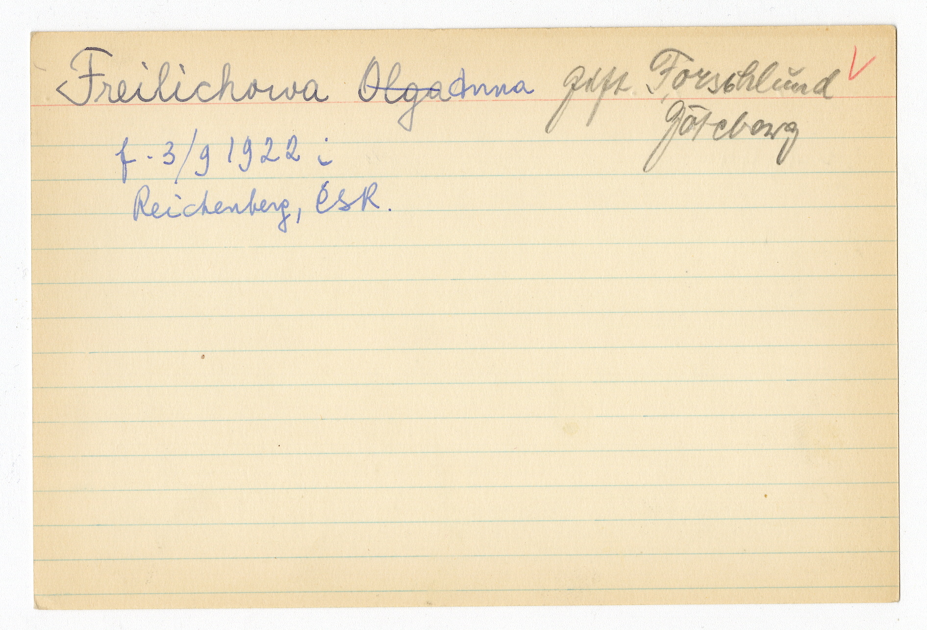 Registerkort Anna Freilichowa och Clara Stein