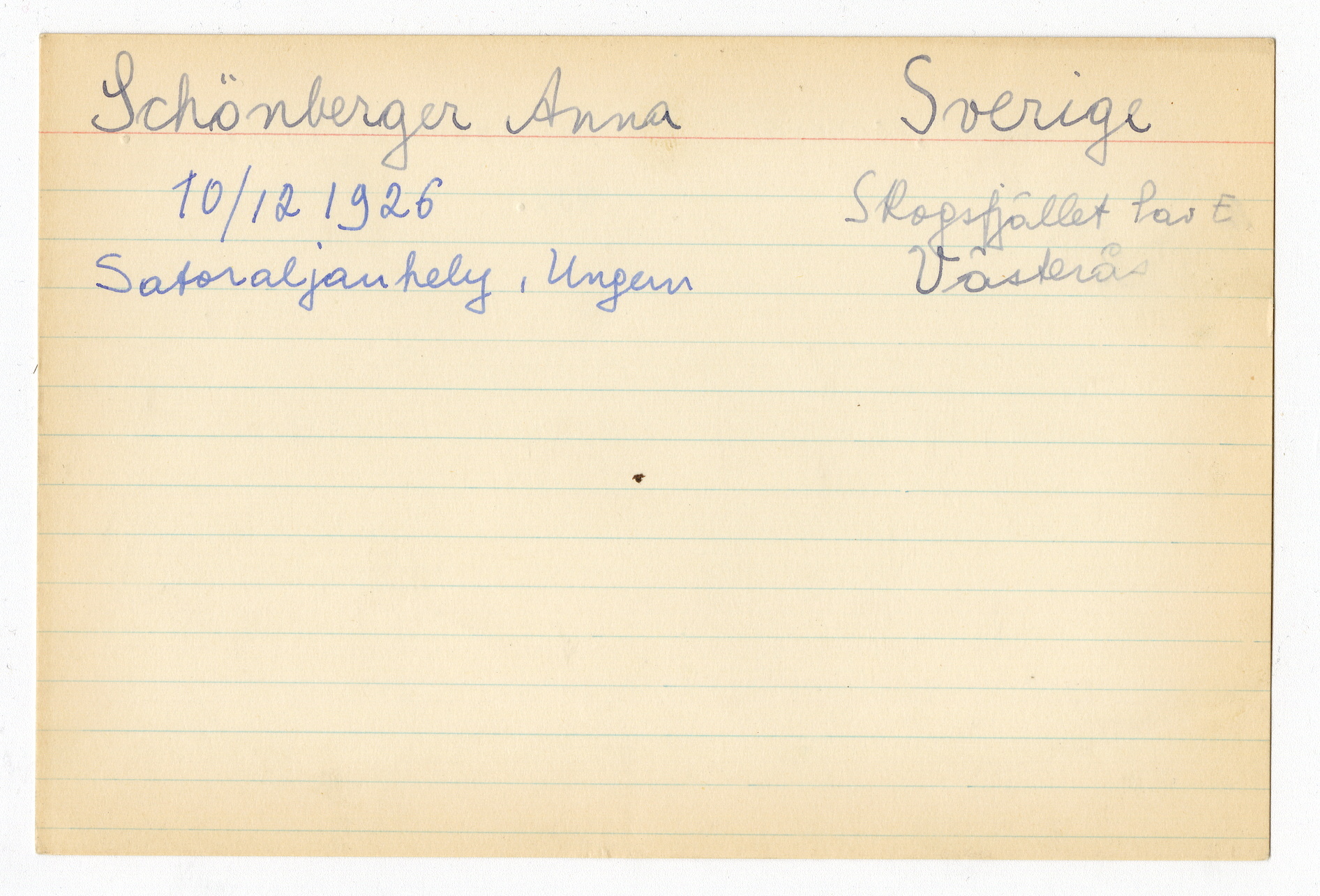 Registerkort Anna Sxhönberger och Richard Stampf