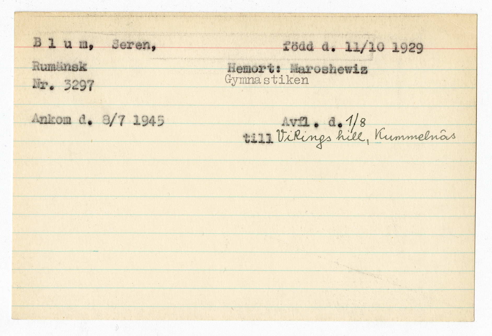 Ett skrivkort med patientuppgifter gällande Seren Blum.