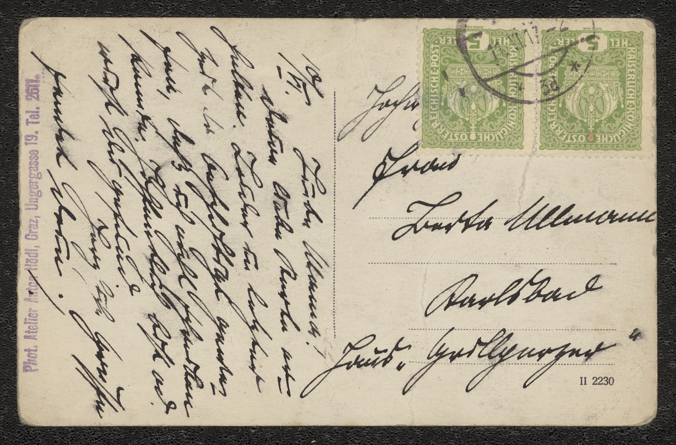Vykort till Ullmann med motiv av militär från första världskriget från 11 juni 1917 Graz.