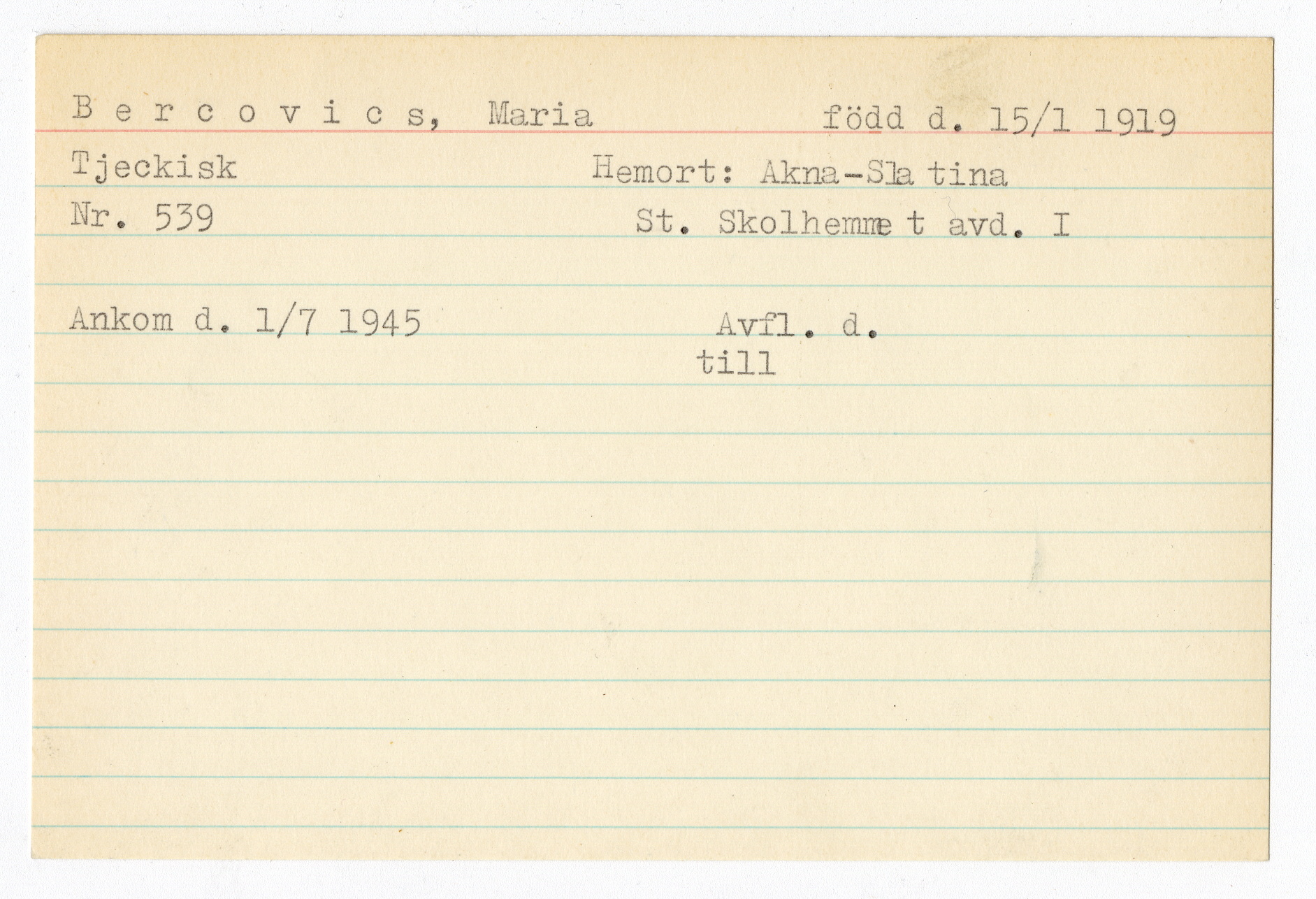 Registerkort Maria Bercovics