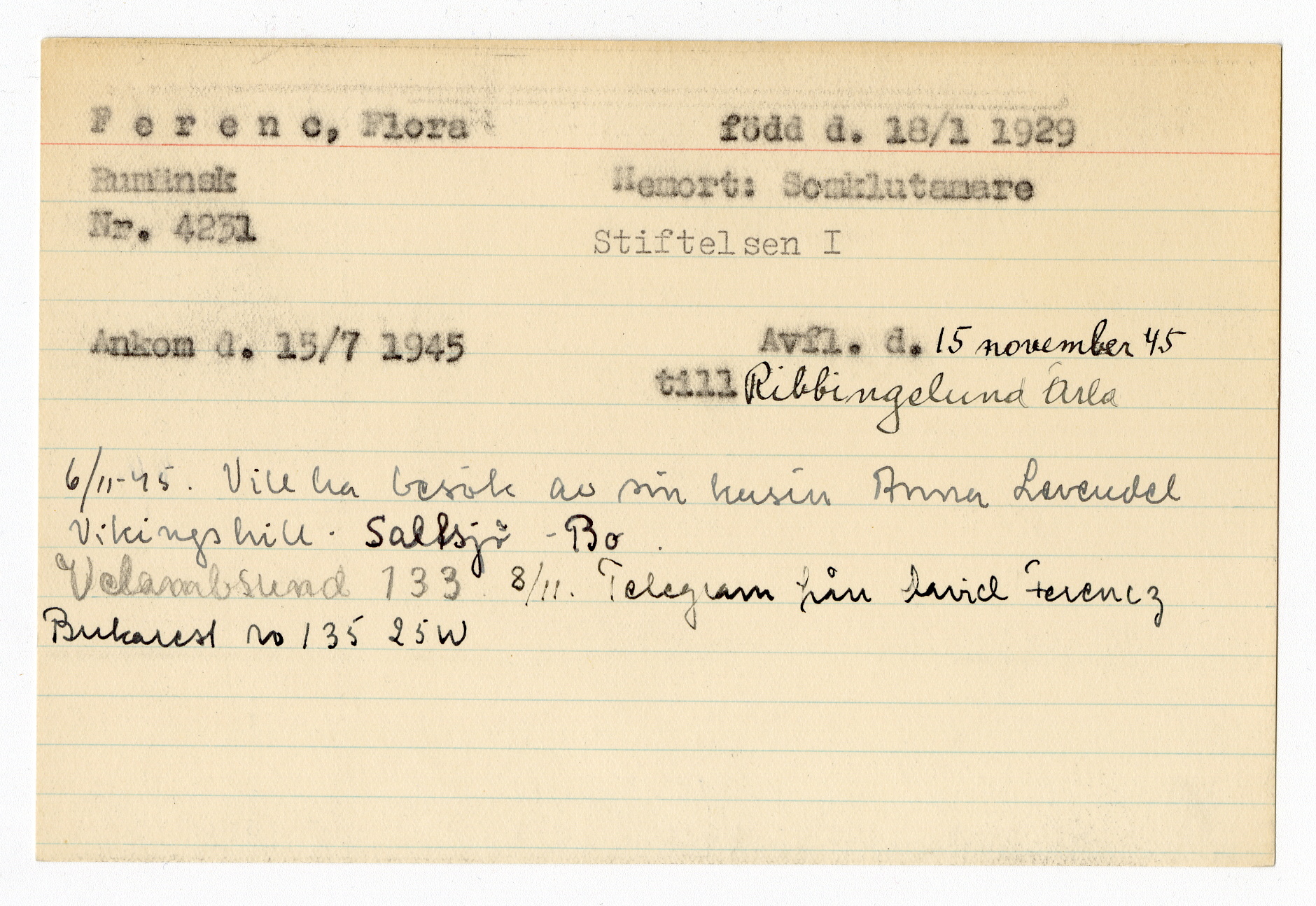 Ett skrivkort med patientuppgifter gällande Flora Ferenco.