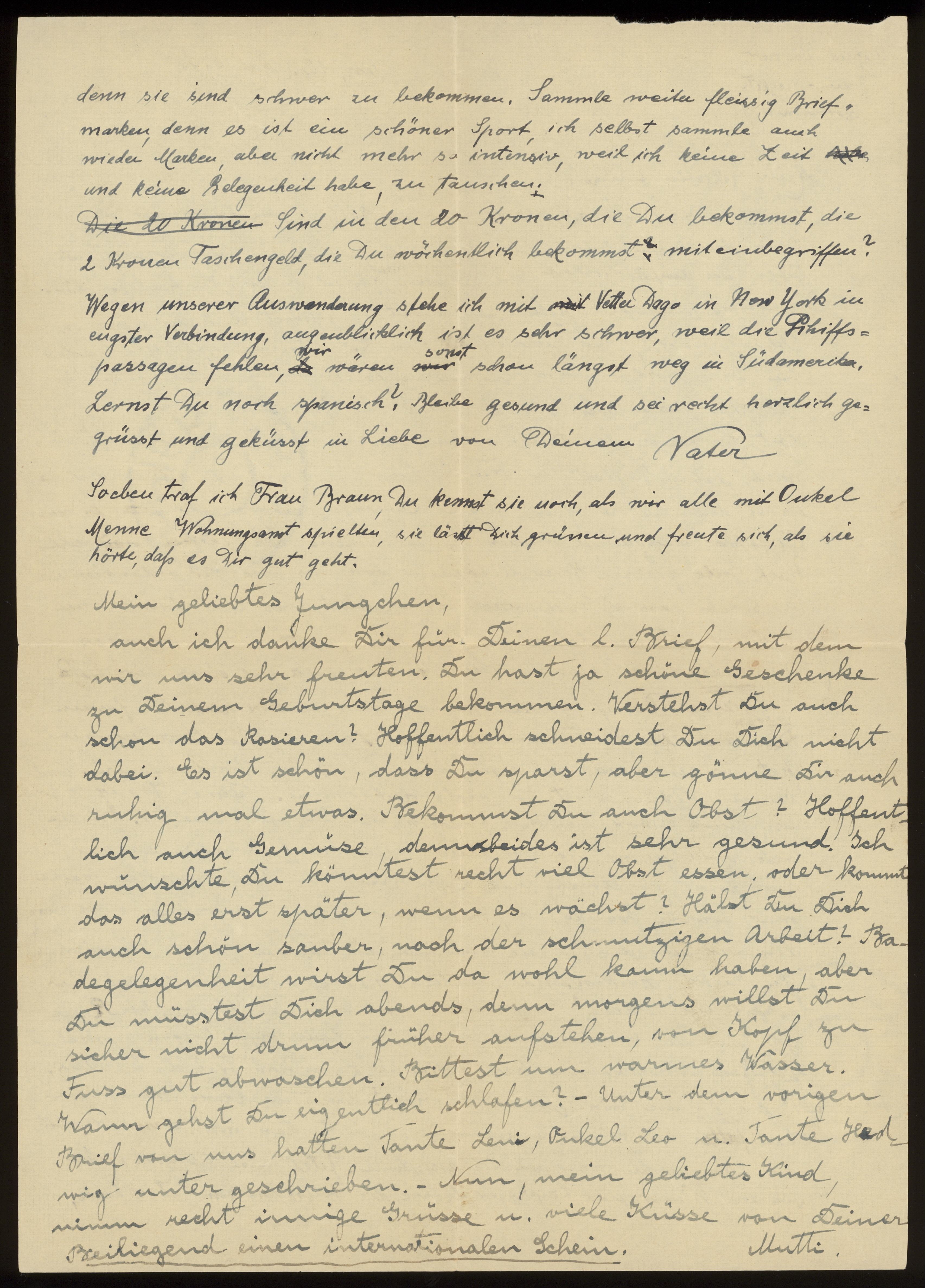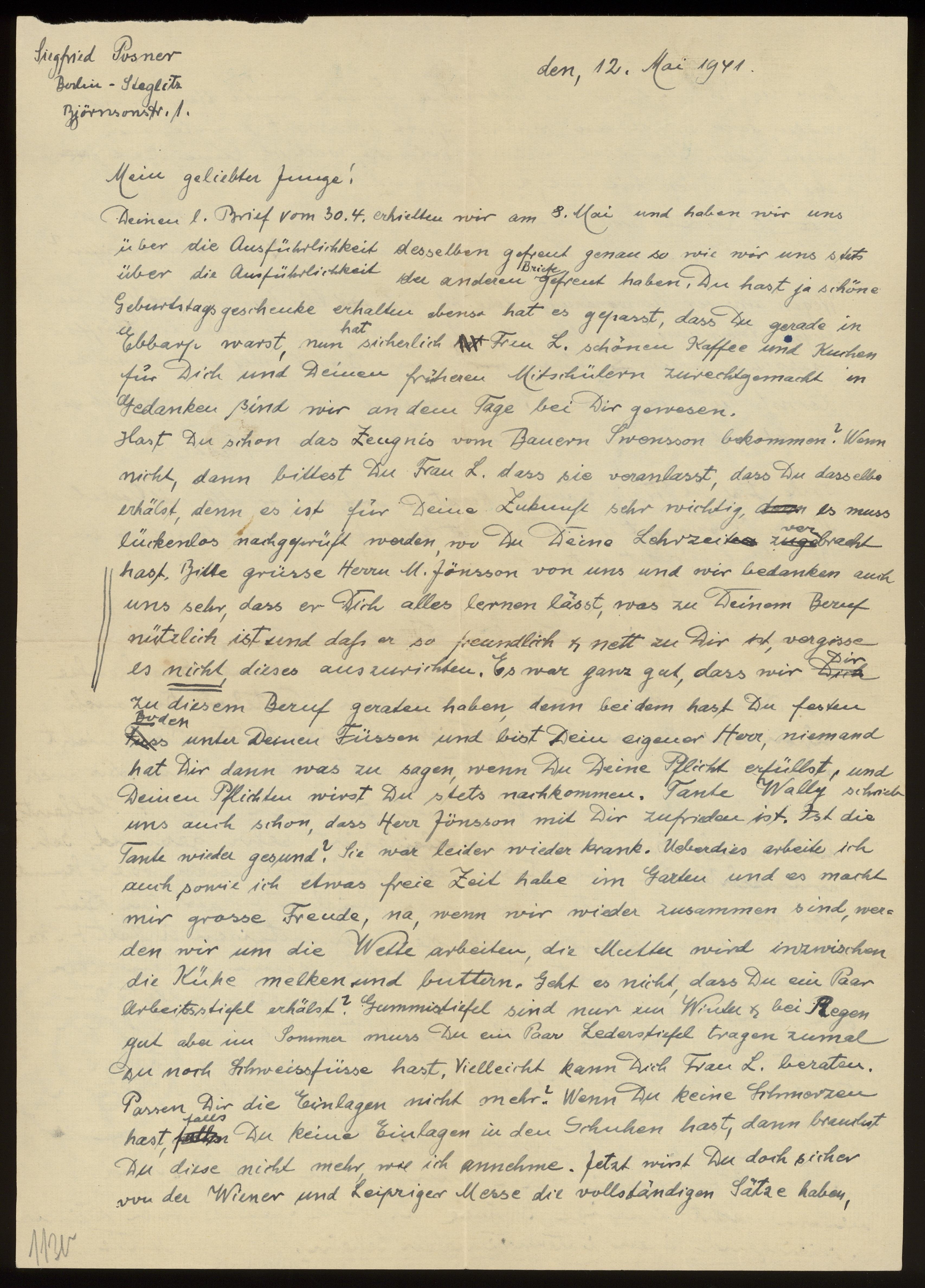 Brev från föräldrarna Anna och Siegfried Posner till sonen Ludwig Posner daterat 12 maj 1941.