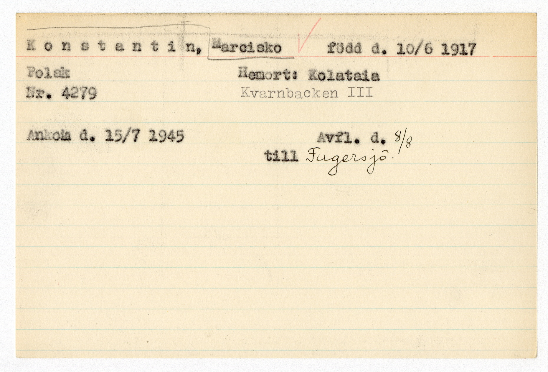 Ett skrivkort med patientuppgifter gällande Konstantin Marcisko.