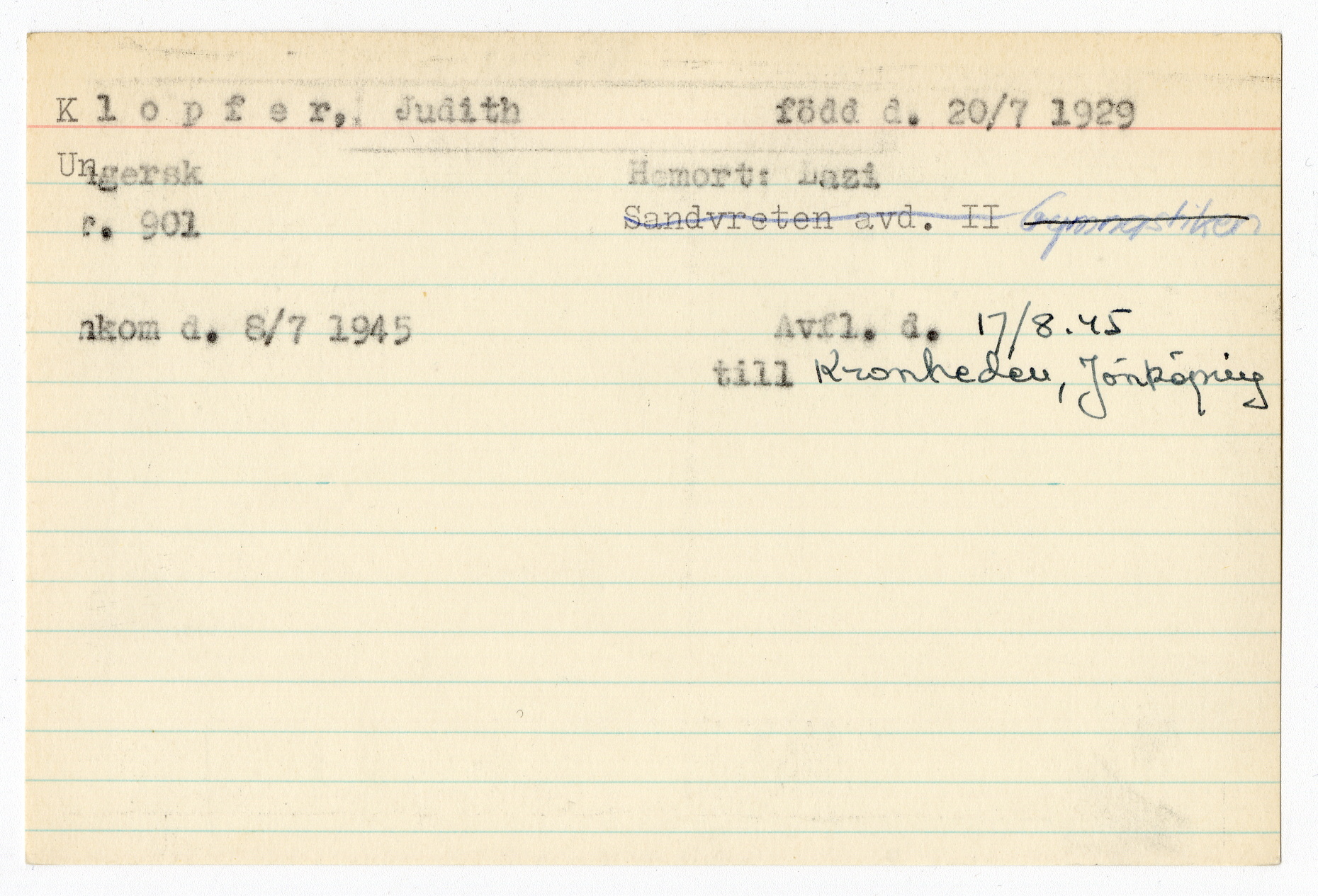 Registerkort Judith Klopfer
