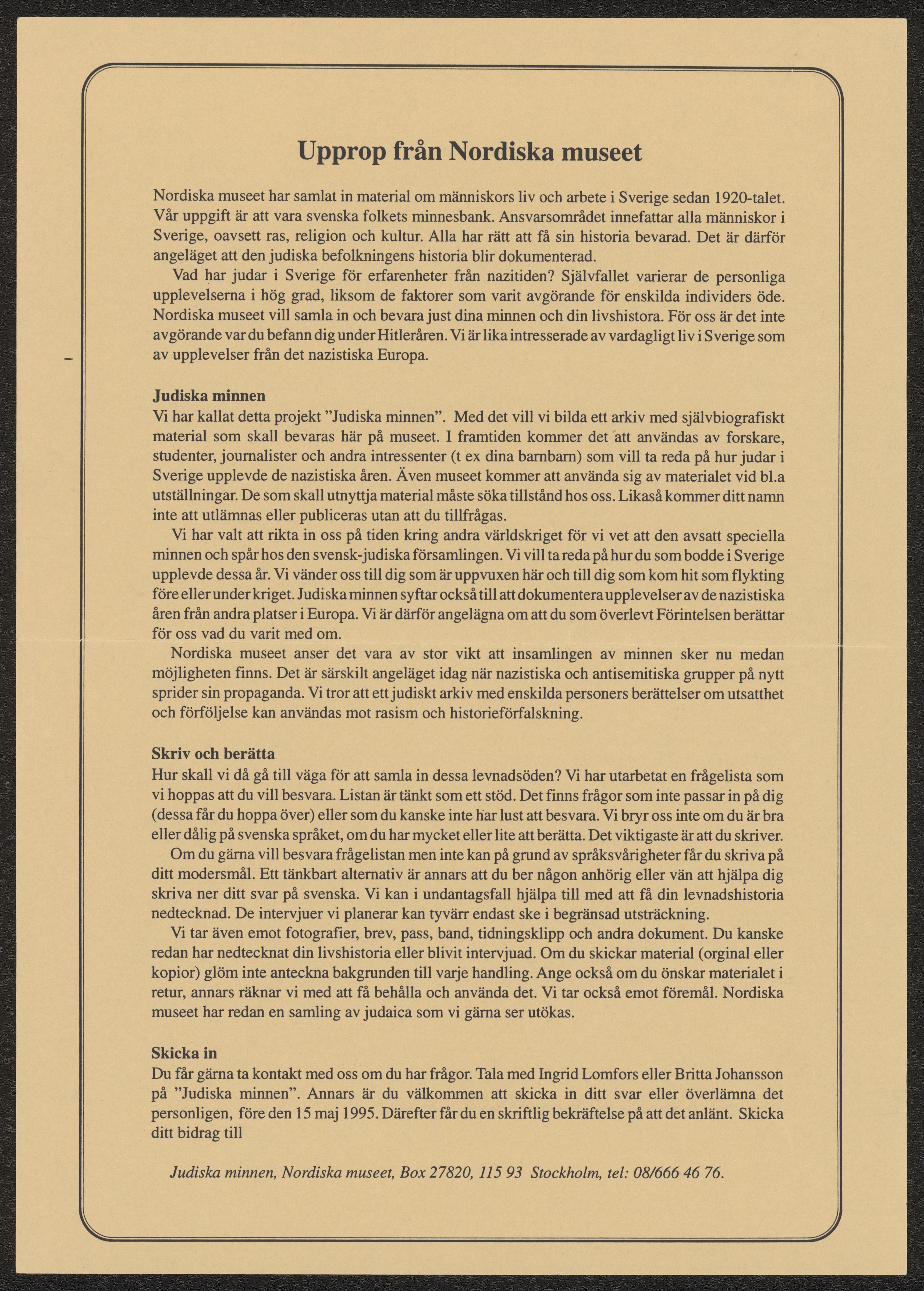 Media: Statens historiska museer. Sveriges museum om Förintelsen/SHM, (PDM) Upphovsrätten till detta verk har gått ut och är därmed fritt att använda på alla sätt. Ange gärna upphovsperson om denne är känd.
