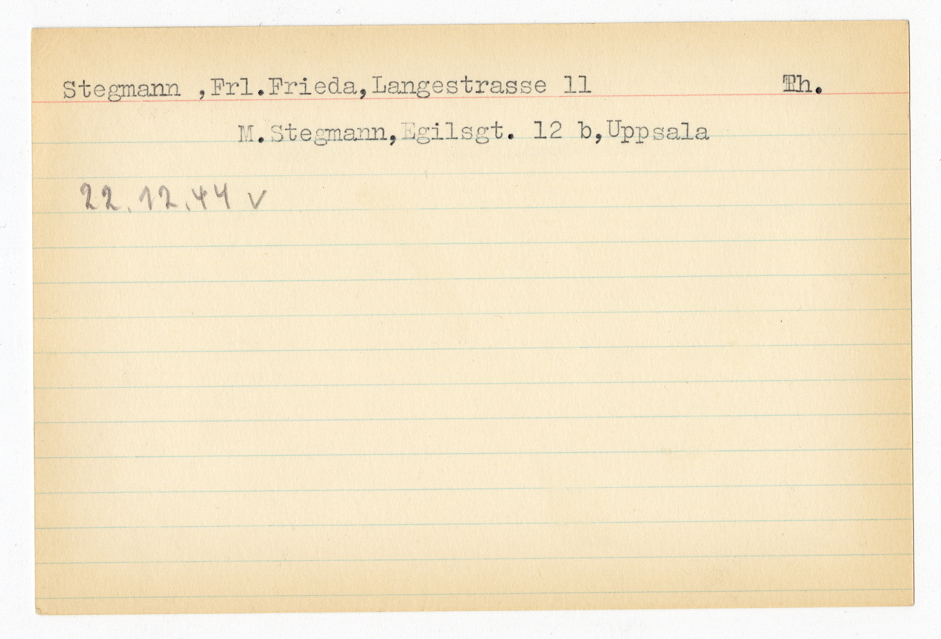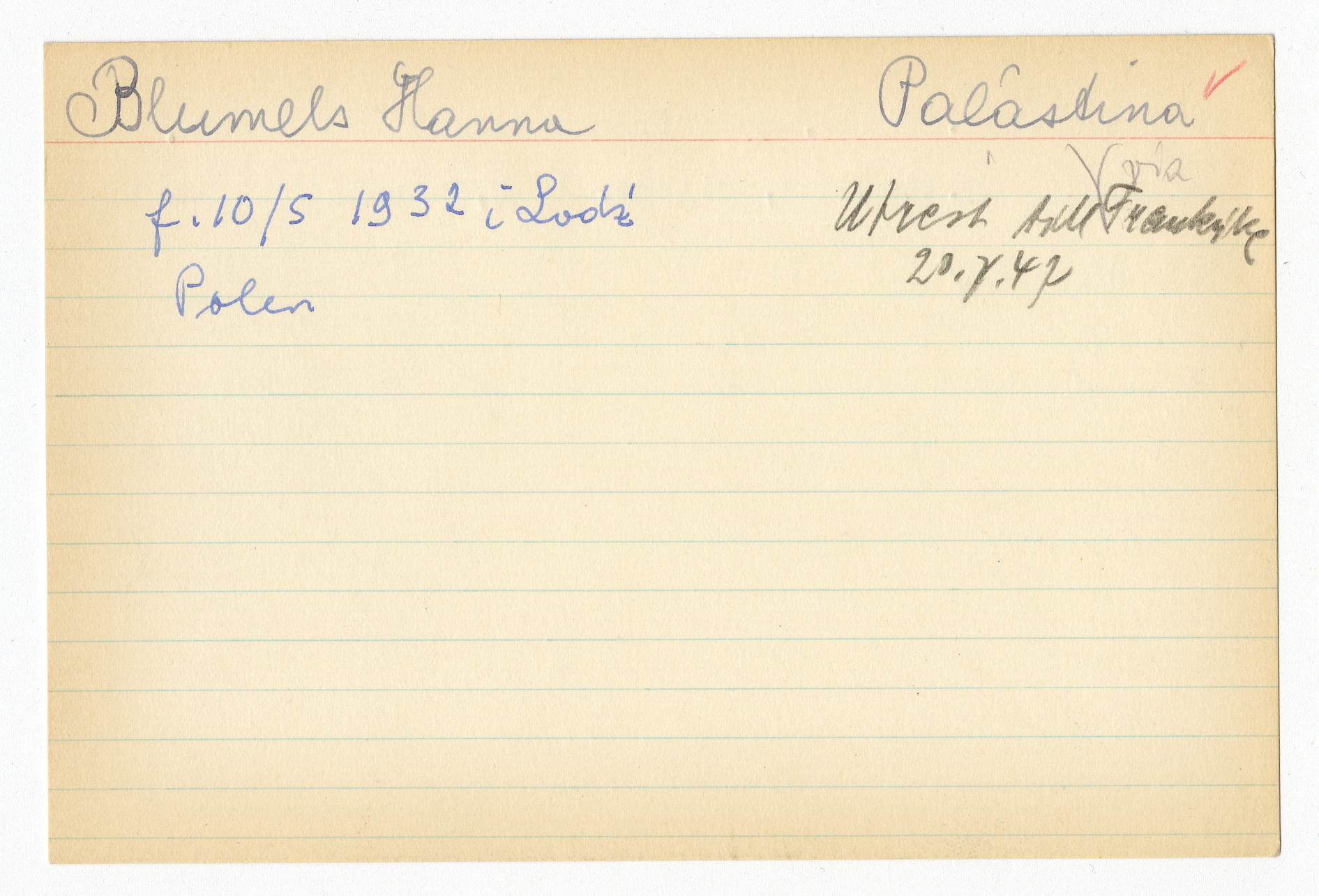 Registerkort Hanna Blumels och Frida Stegmann