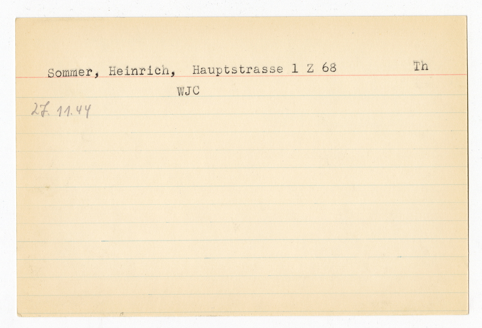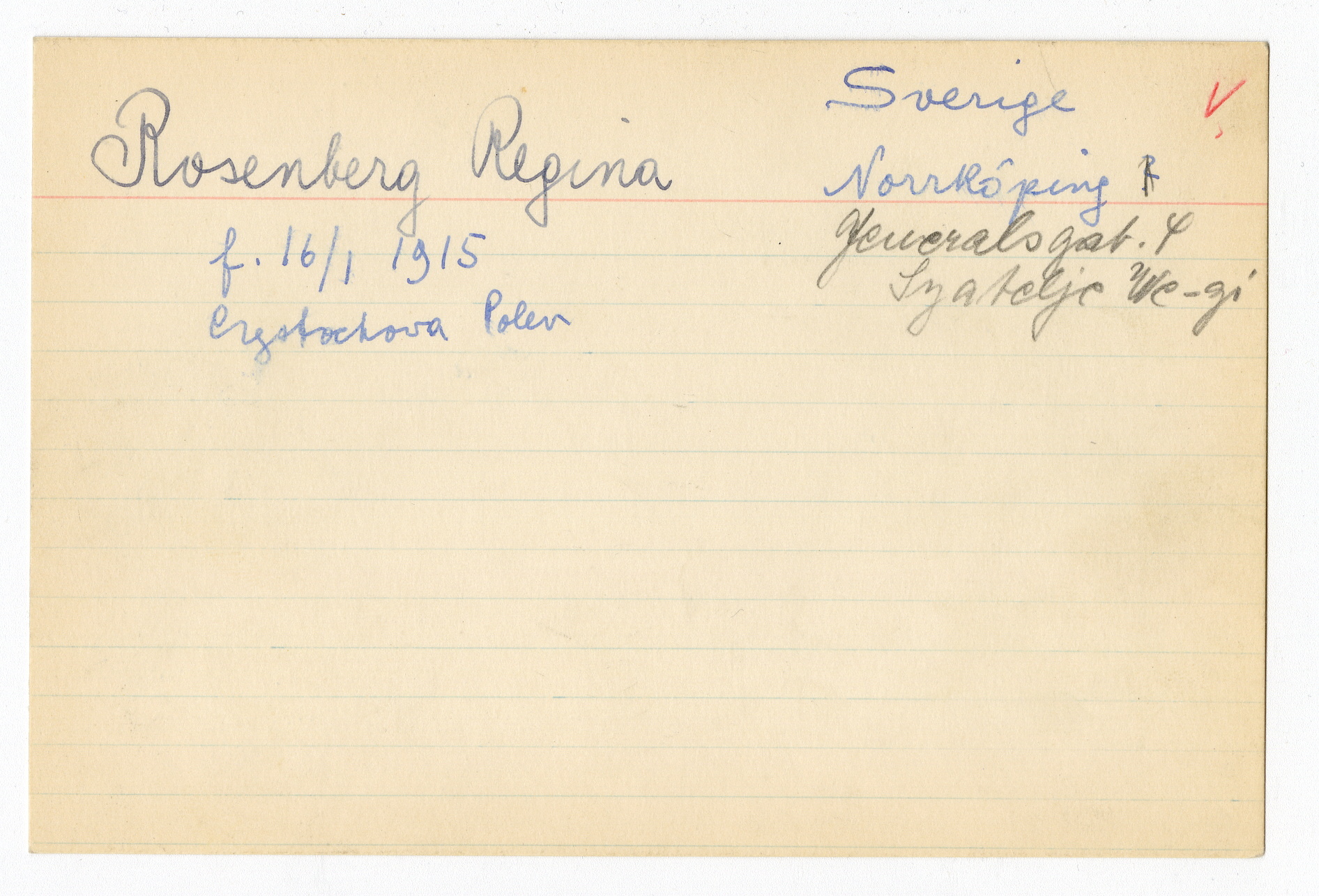 Registerkort Regina Rosenberg och Heinrich Sommer