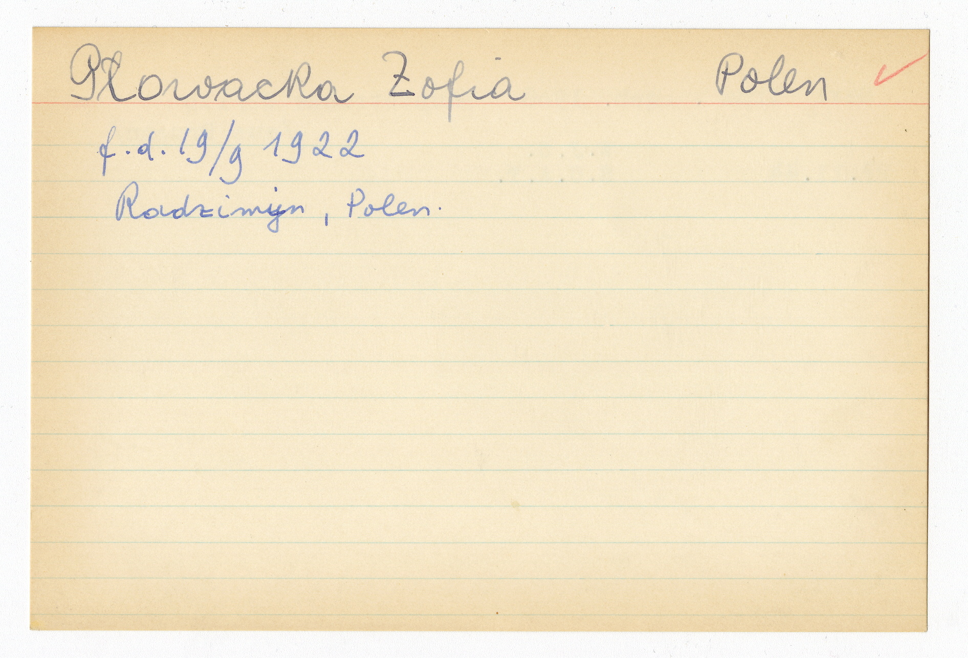 Registerkort Zofia Glowacka och Irma Saxl