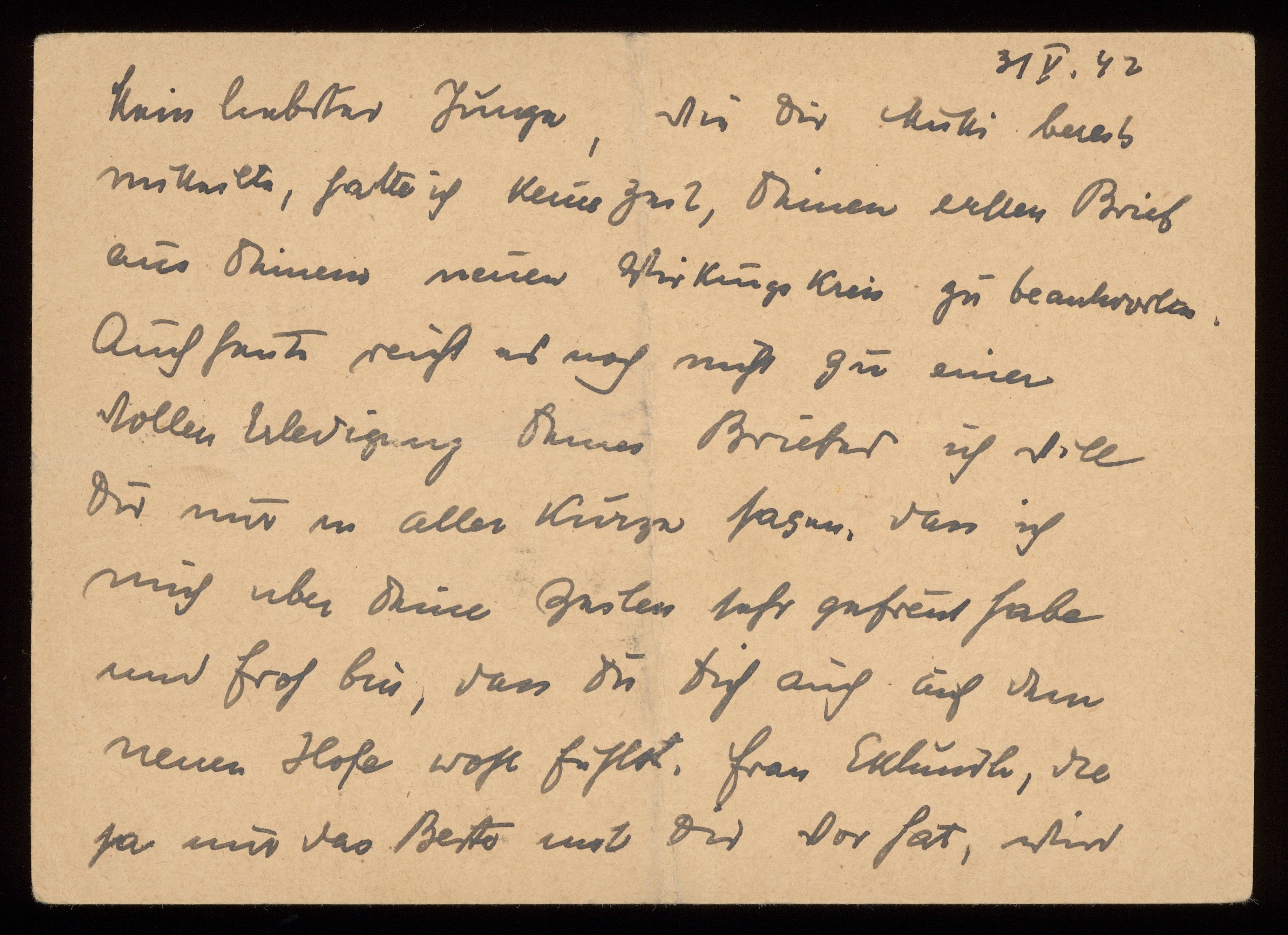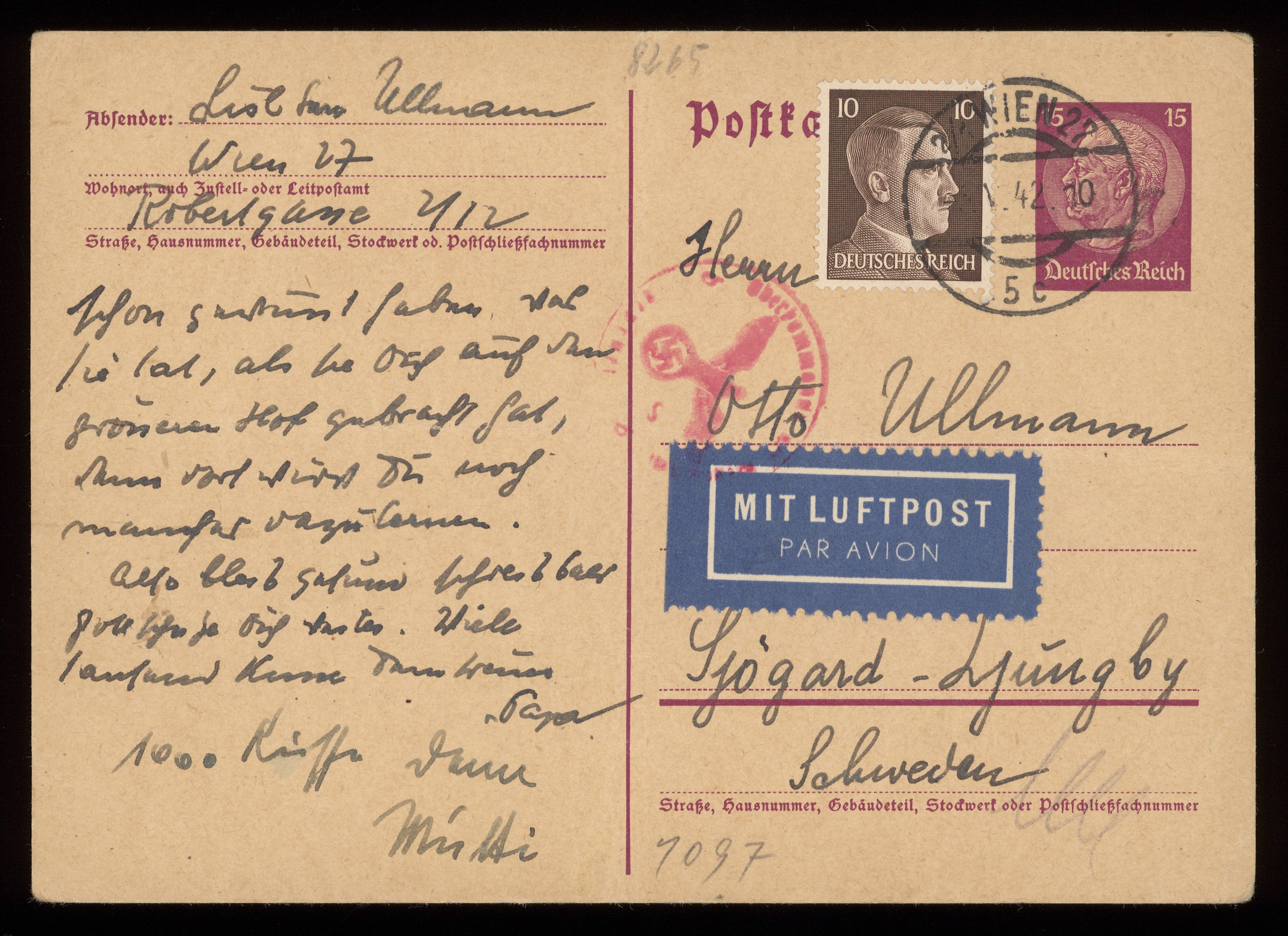 Brev till Otto Ullman från föräldrarna Josef och Elise Ullmann daterat 31 maj 1942 Wien.