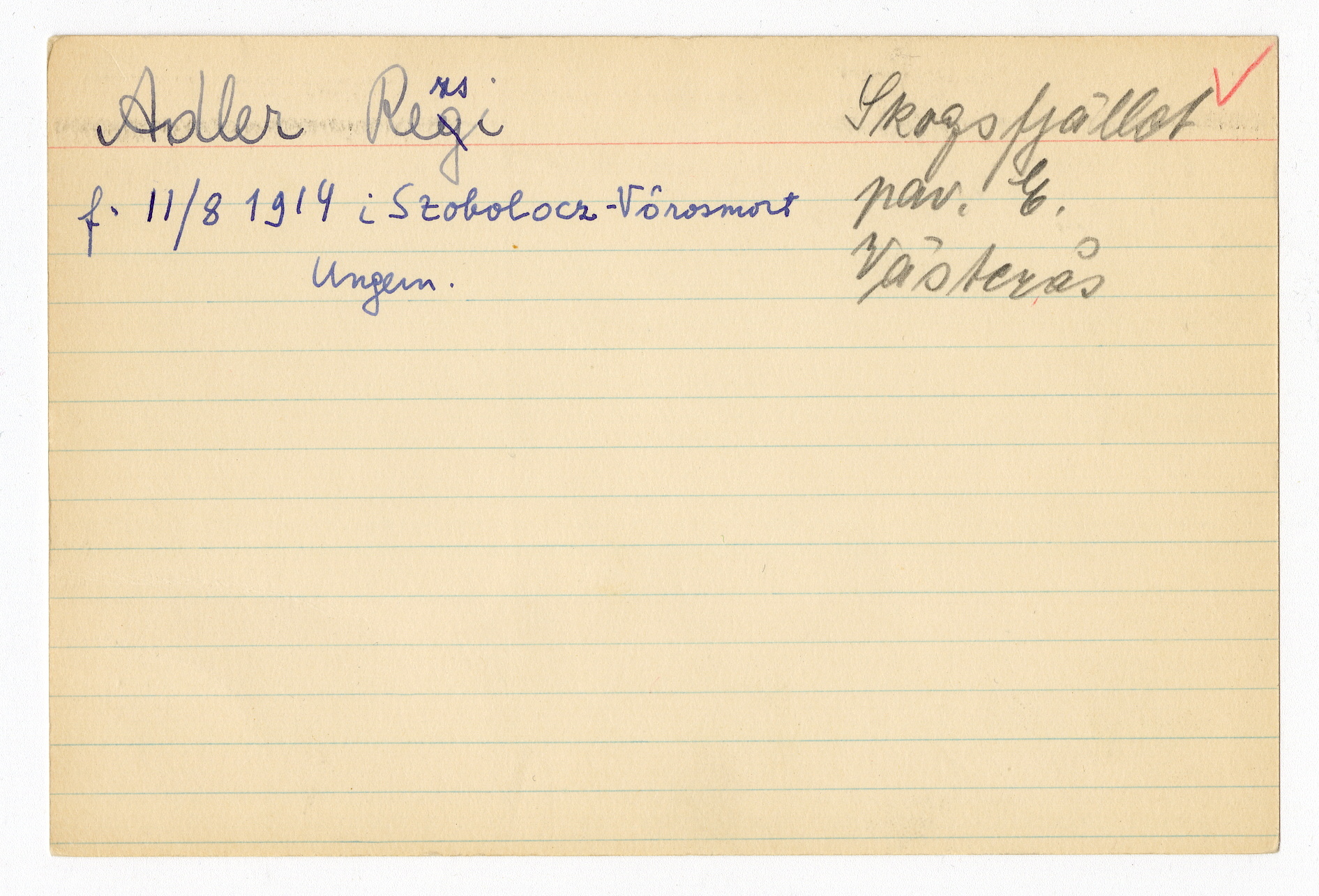 Registerkort Rezsi Adler och Frieda Stein
