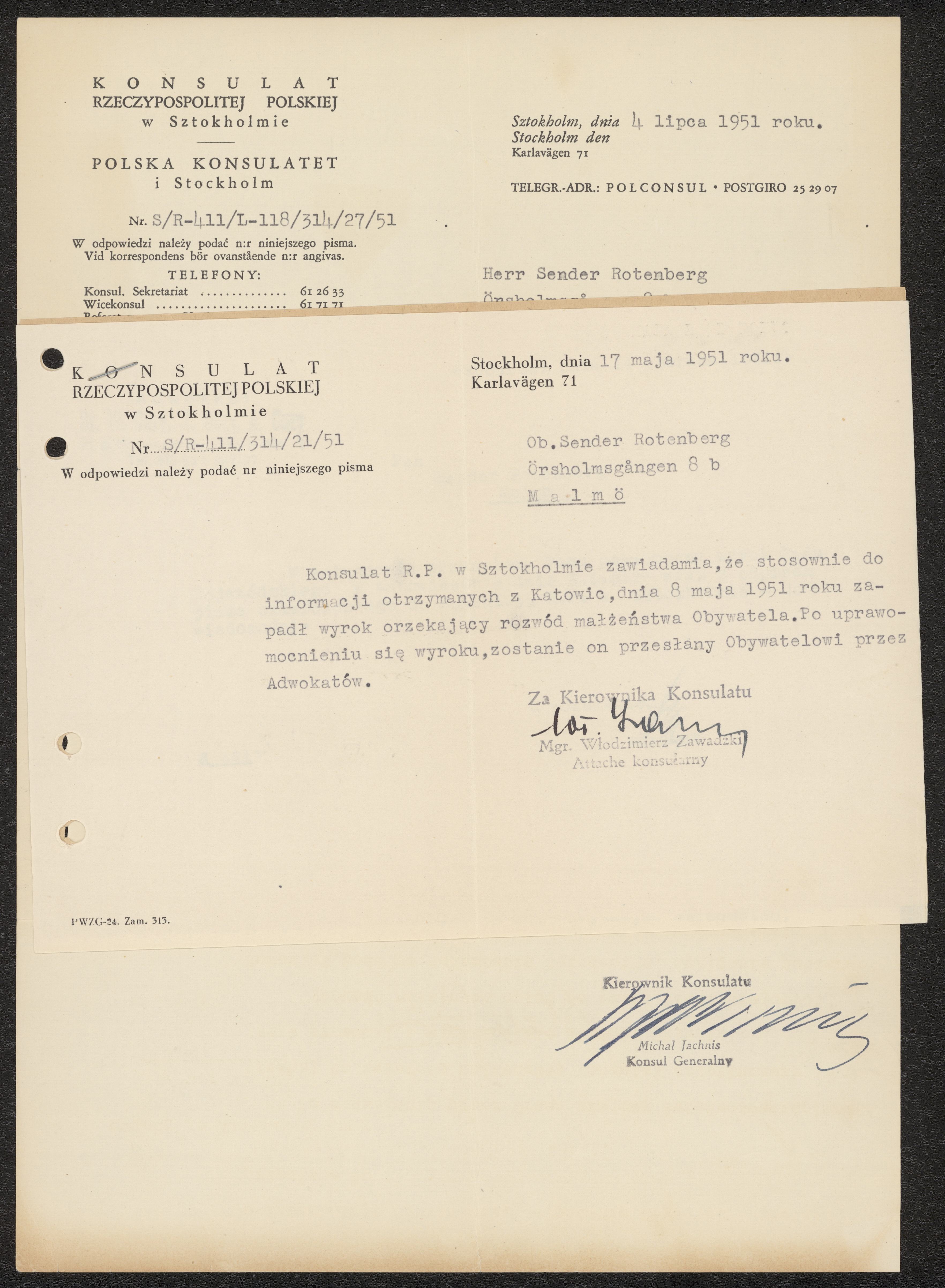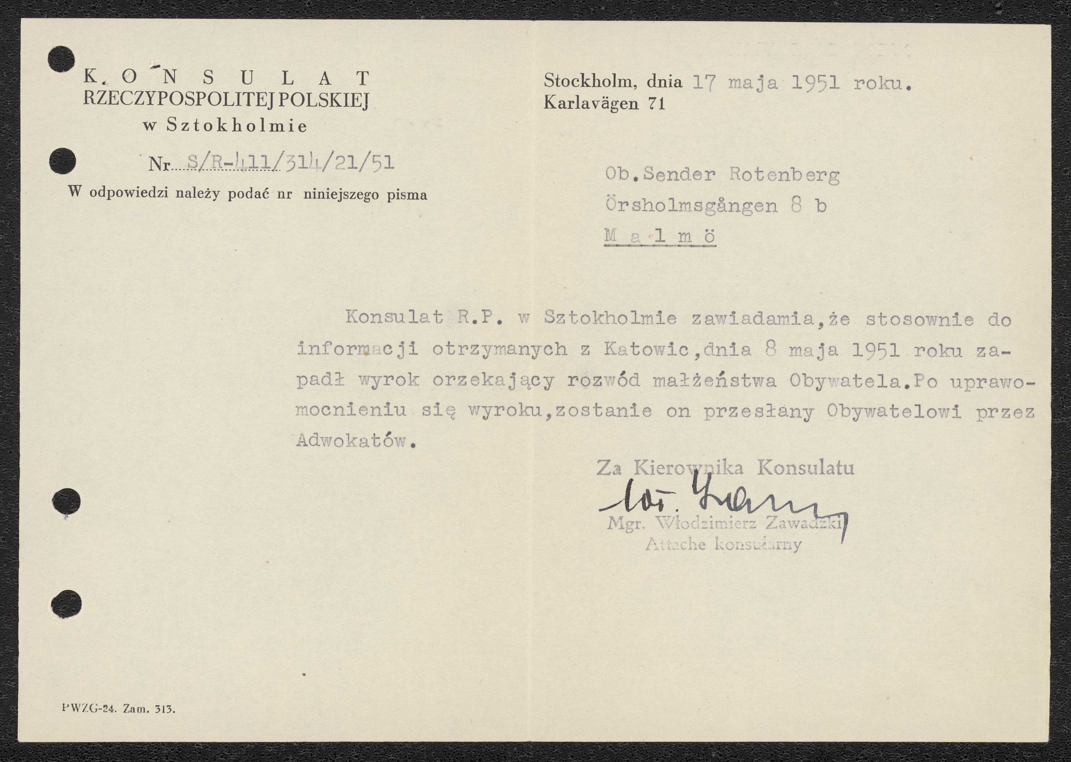 Skilsmässobrev 1951-05-17