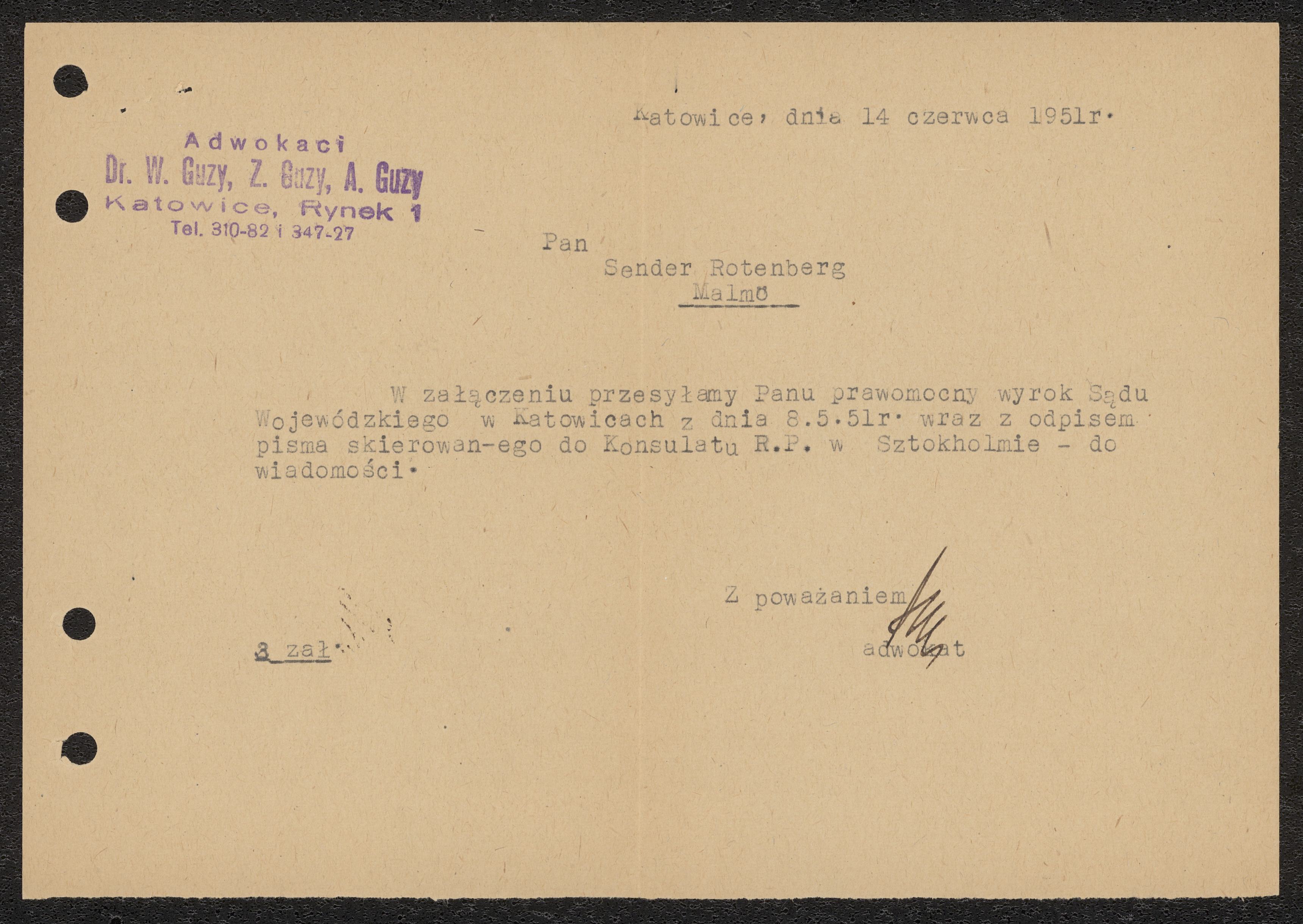 Handlingar från en polsk domstol om beslut om skilsmässa för Sender och Elli Rotenberg