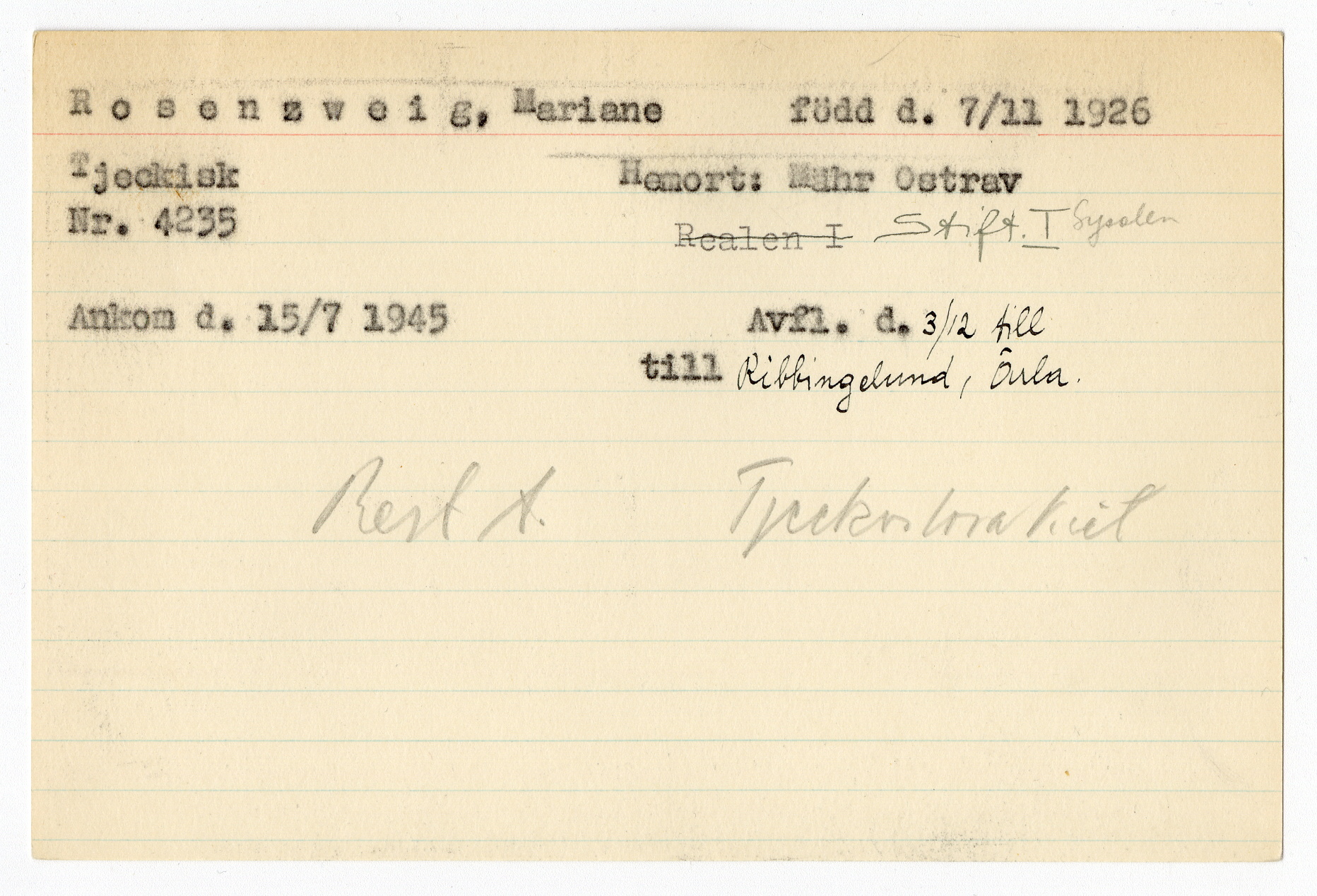 Registerkort Mariane Rosenzweig