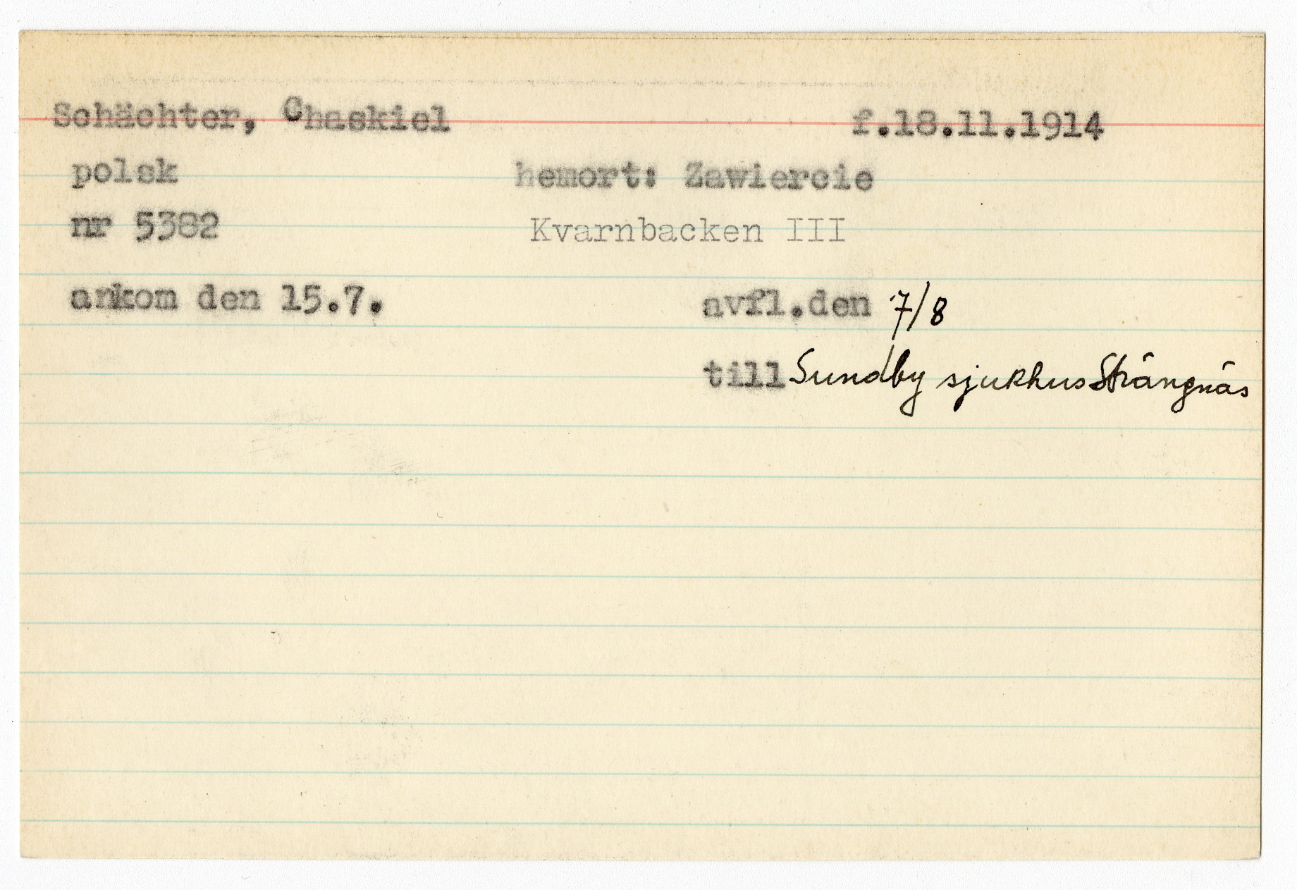 Ett skrivkort med patientuppgifter gällande Ghaskiel Schächter.