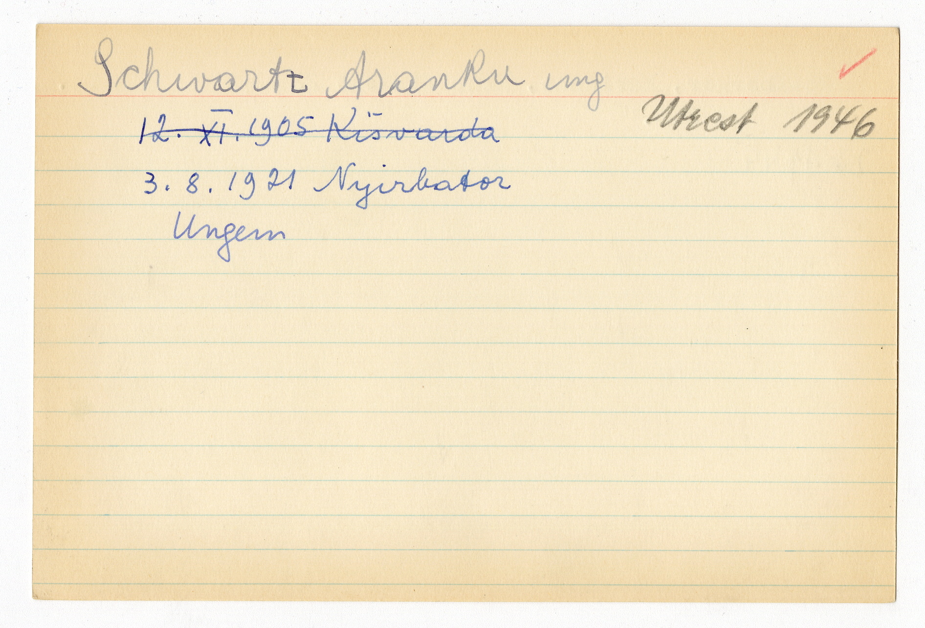 Registerkort Aranku Schwartz och Marianne Stamberger