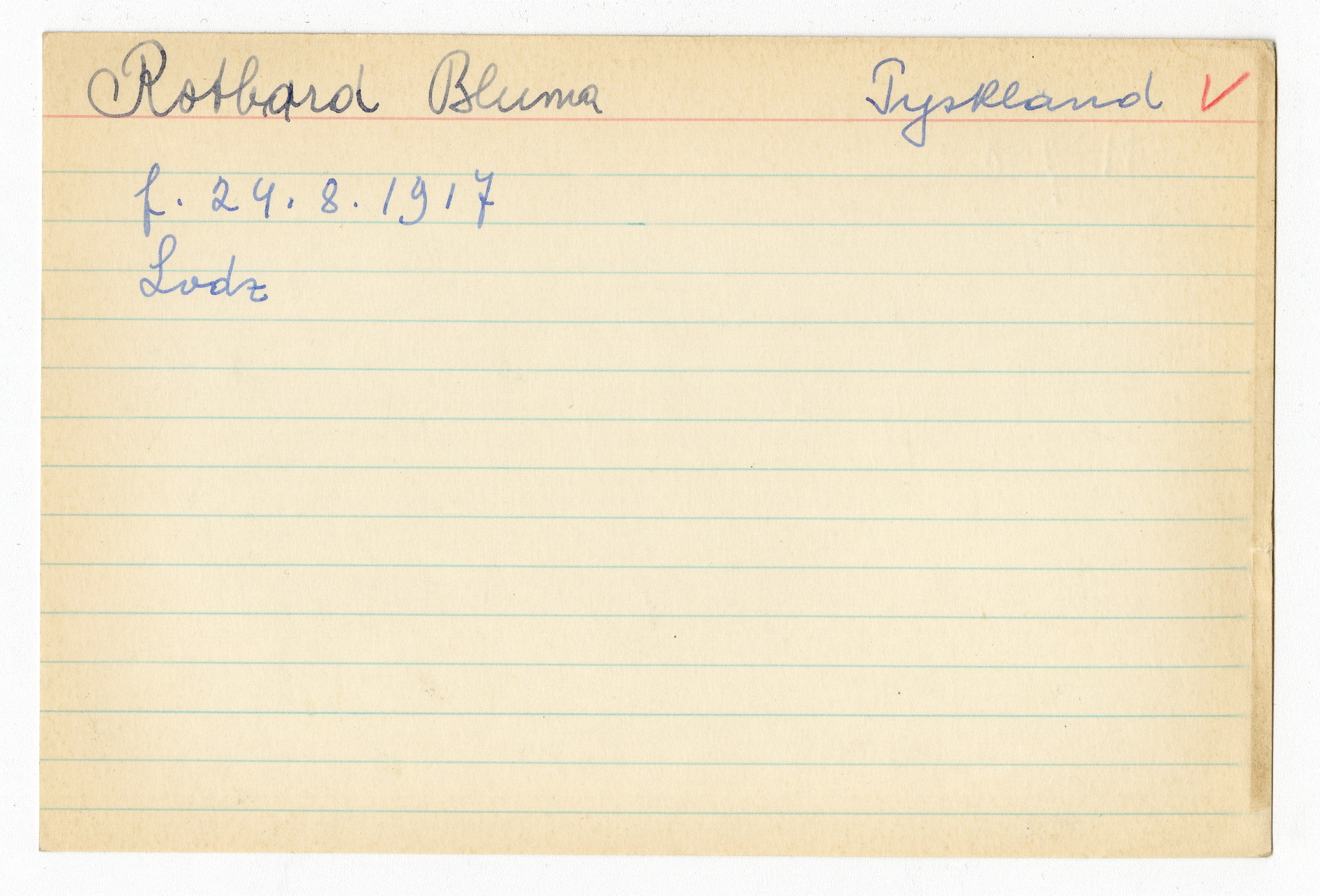 Ett skrivkort med patientuppgifter gällande Bluma Rotbard. På baksidan uppgifter om matpaket till Eva Smejkal i Theresienstadt.