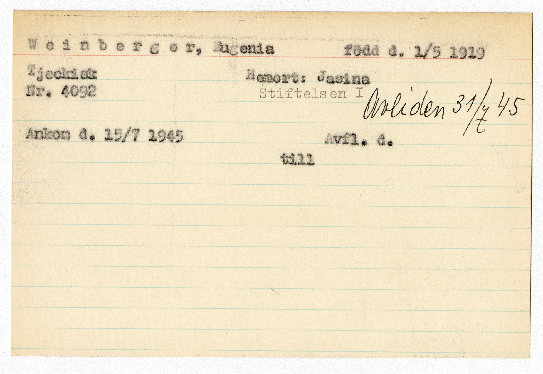 Registerkort Eugenia Weinberger