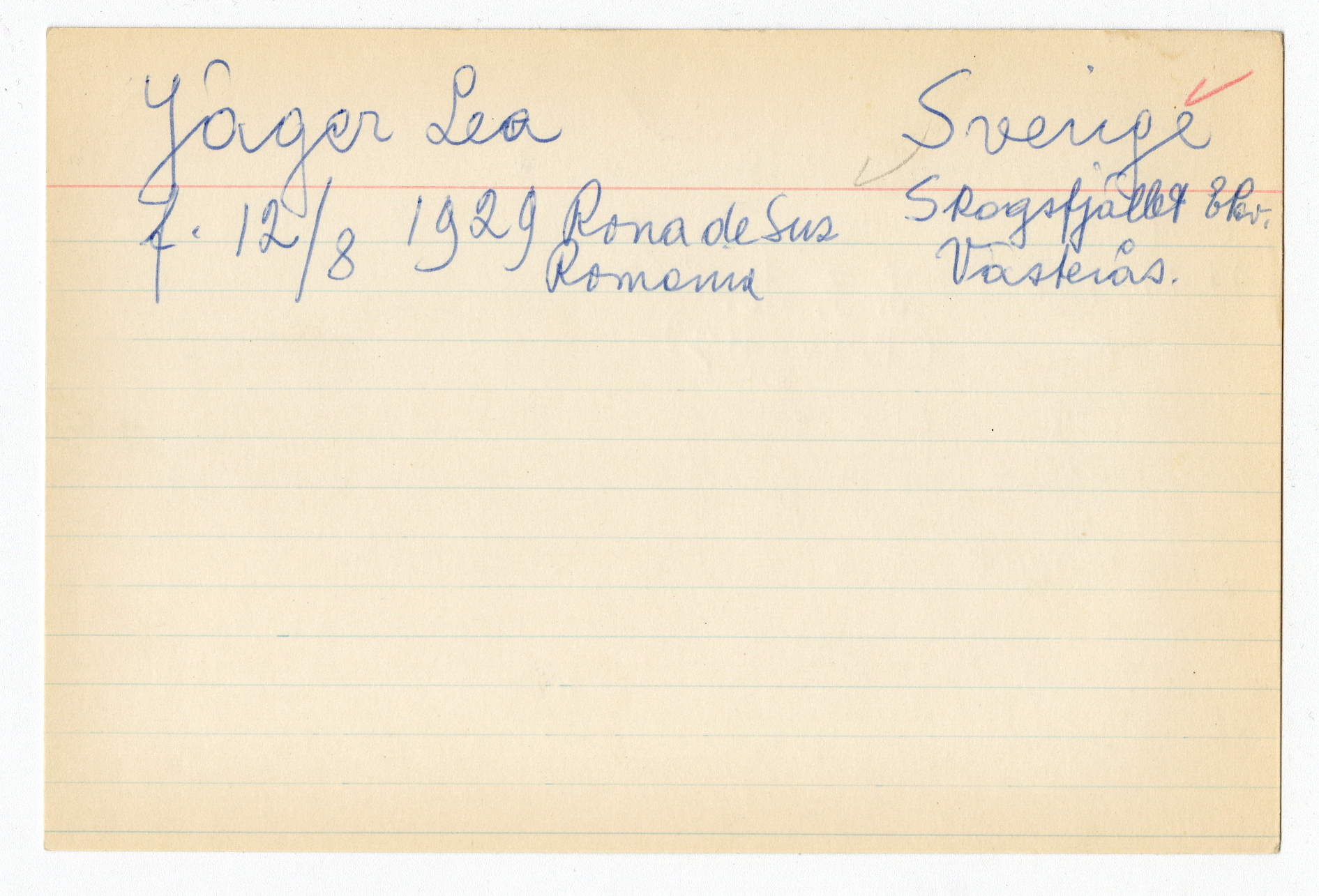 Registerkort Lea Jäger och Pauline Spitzer
