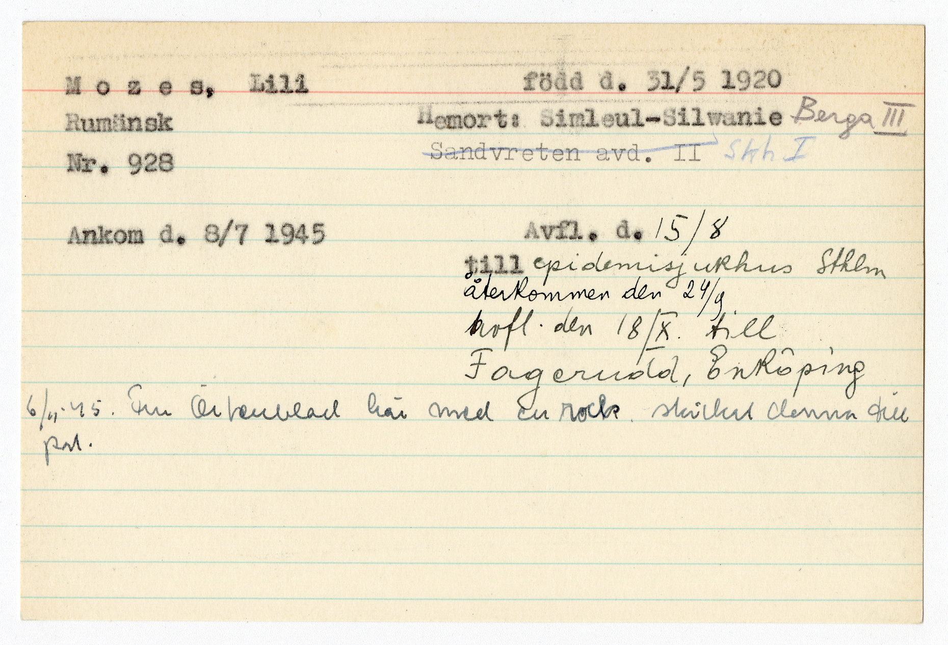 Registerkort Lili Mozes