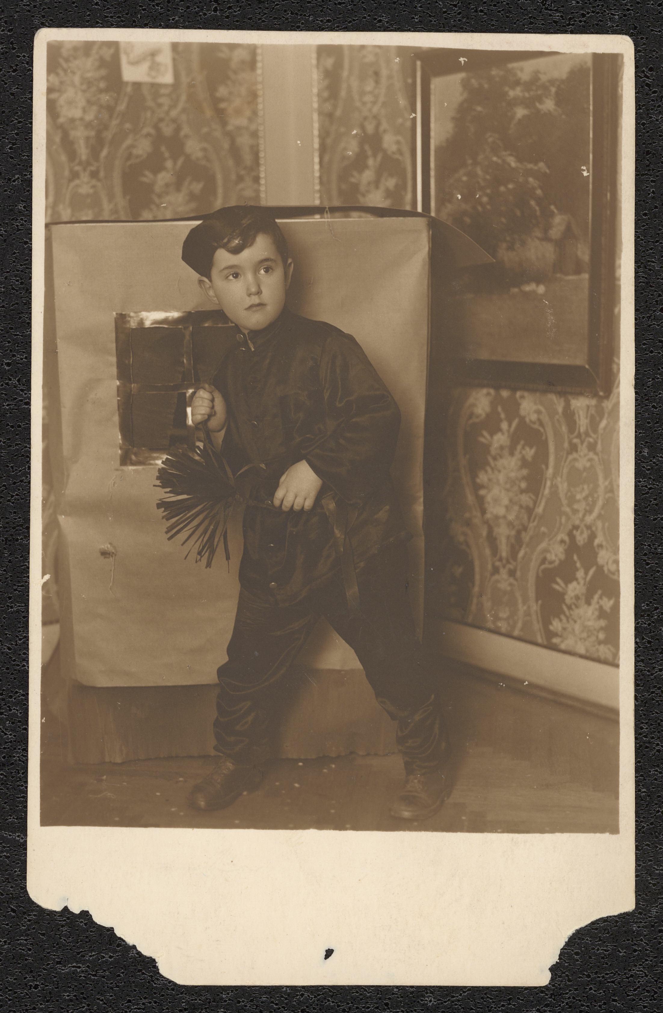 Porträtt av Georg Witt som barn, utklädd till sotare. Fotografiet är troligen taget i familjens hus i Újpest.