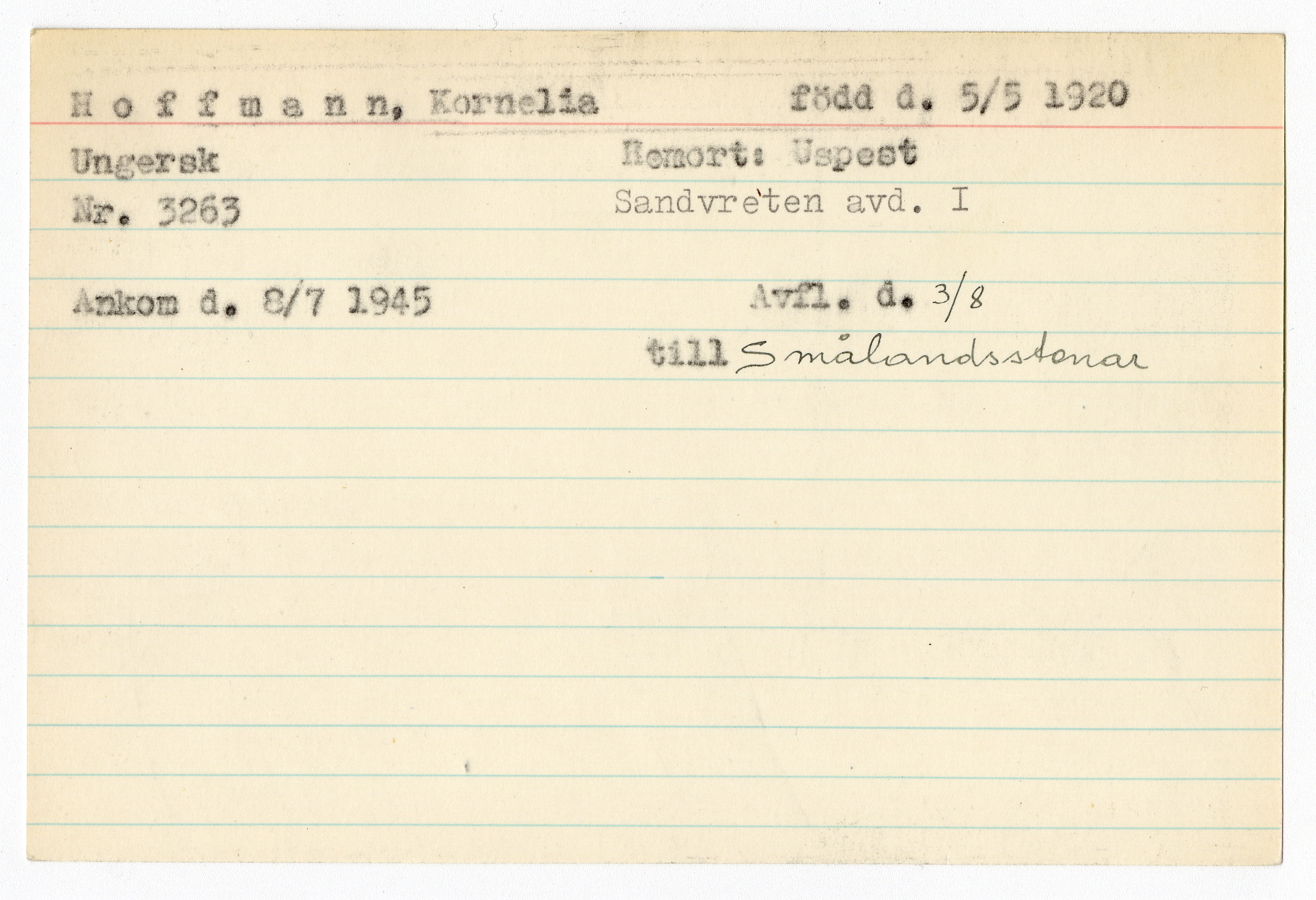 Ett skrivkort med patientuppgifter gällande Kornelia Hoffmann.