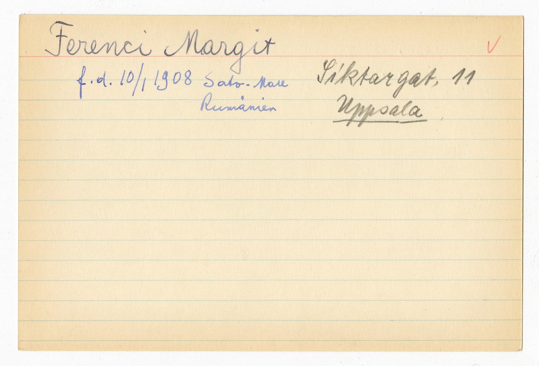 Registerkort Margit Ferenci och Willy Schoenfeld