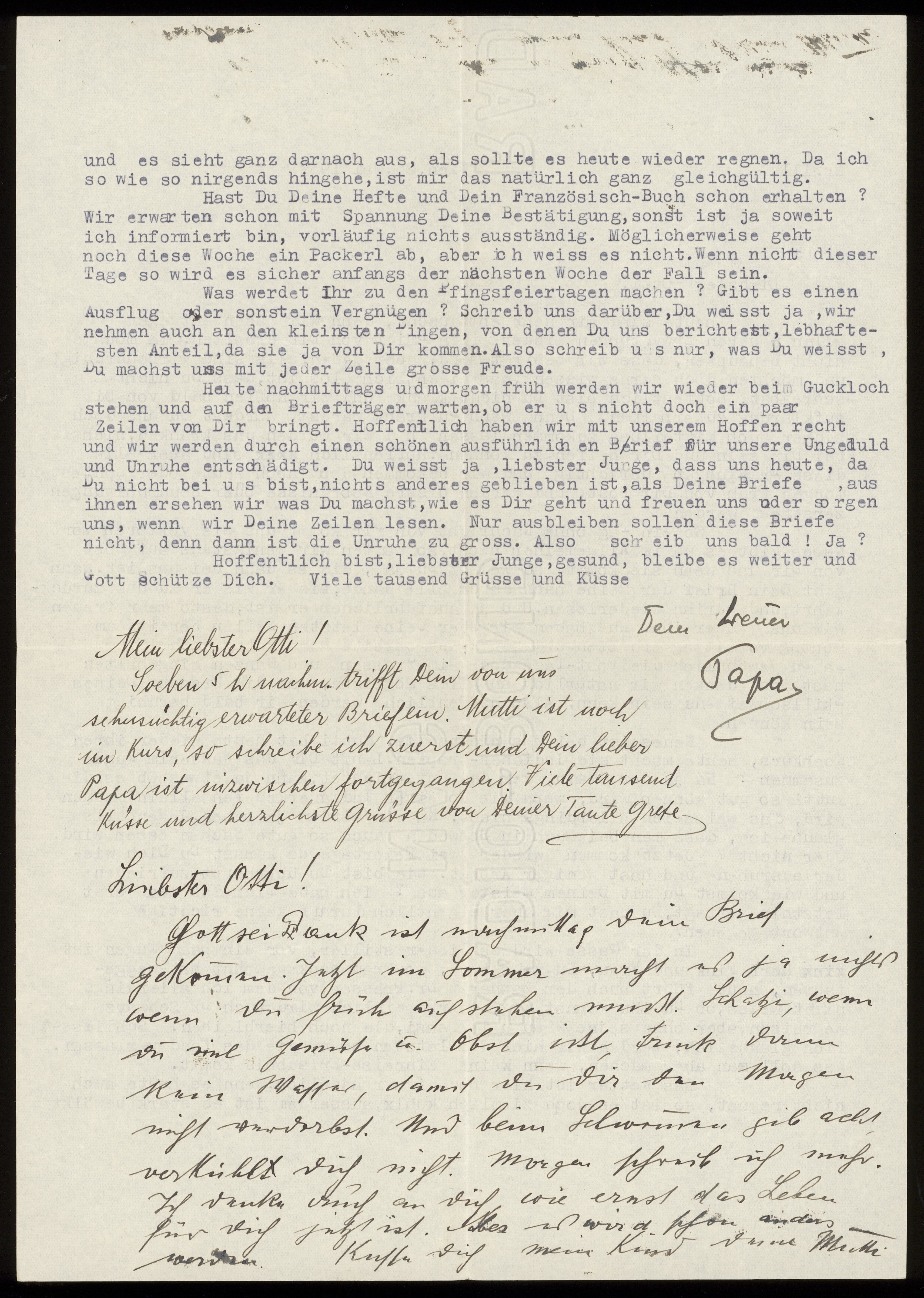 Maskinskrivet brev till Otto Ullman från föräldrarna Josef och Elise Ullmann och moster Grete Kollmann daterat 25 maj 1939 Wien.