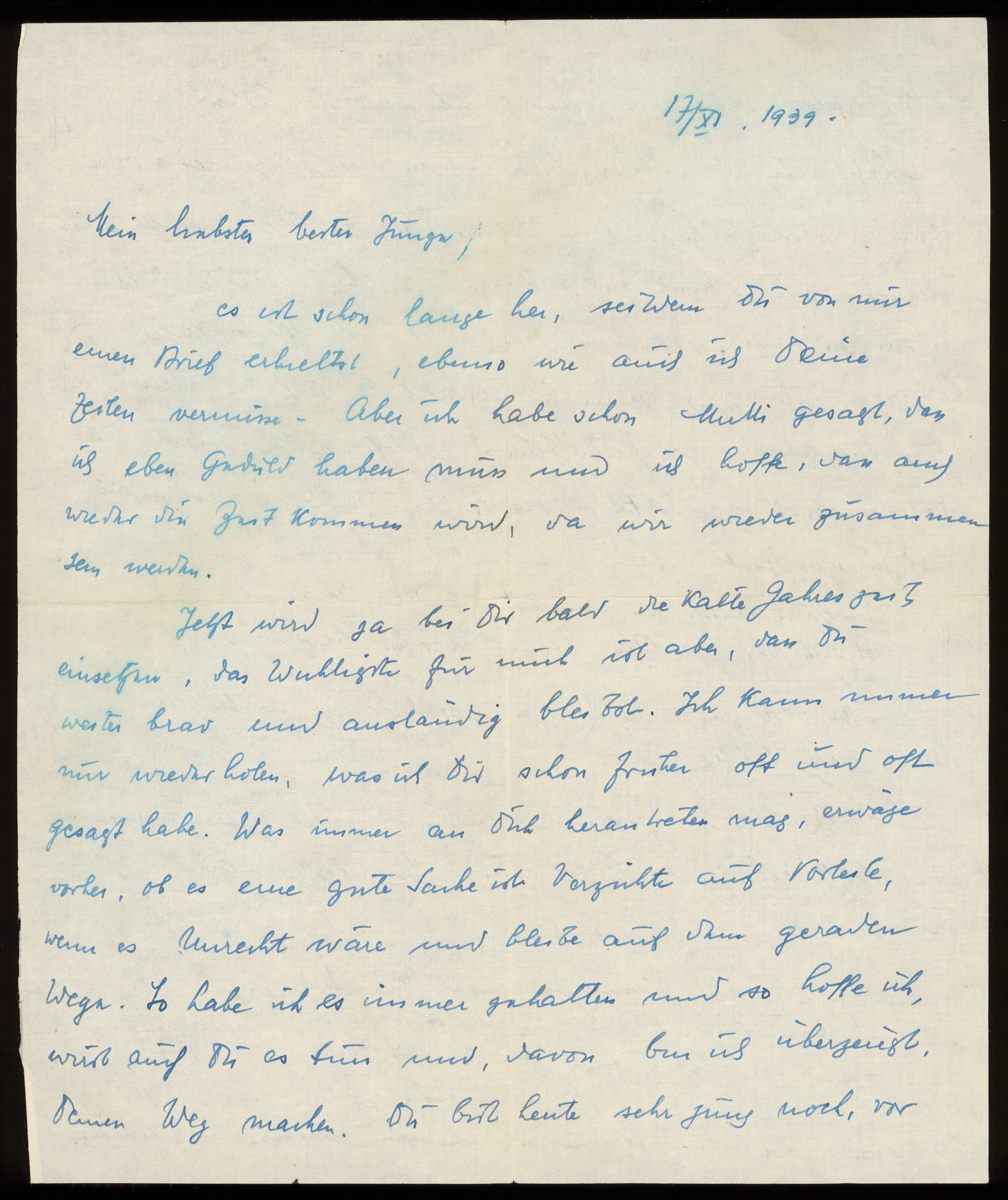Brev till Otto Ullman från föräldrarna Josef och Elise Ullmann daterat 17 november 1939 Wien.