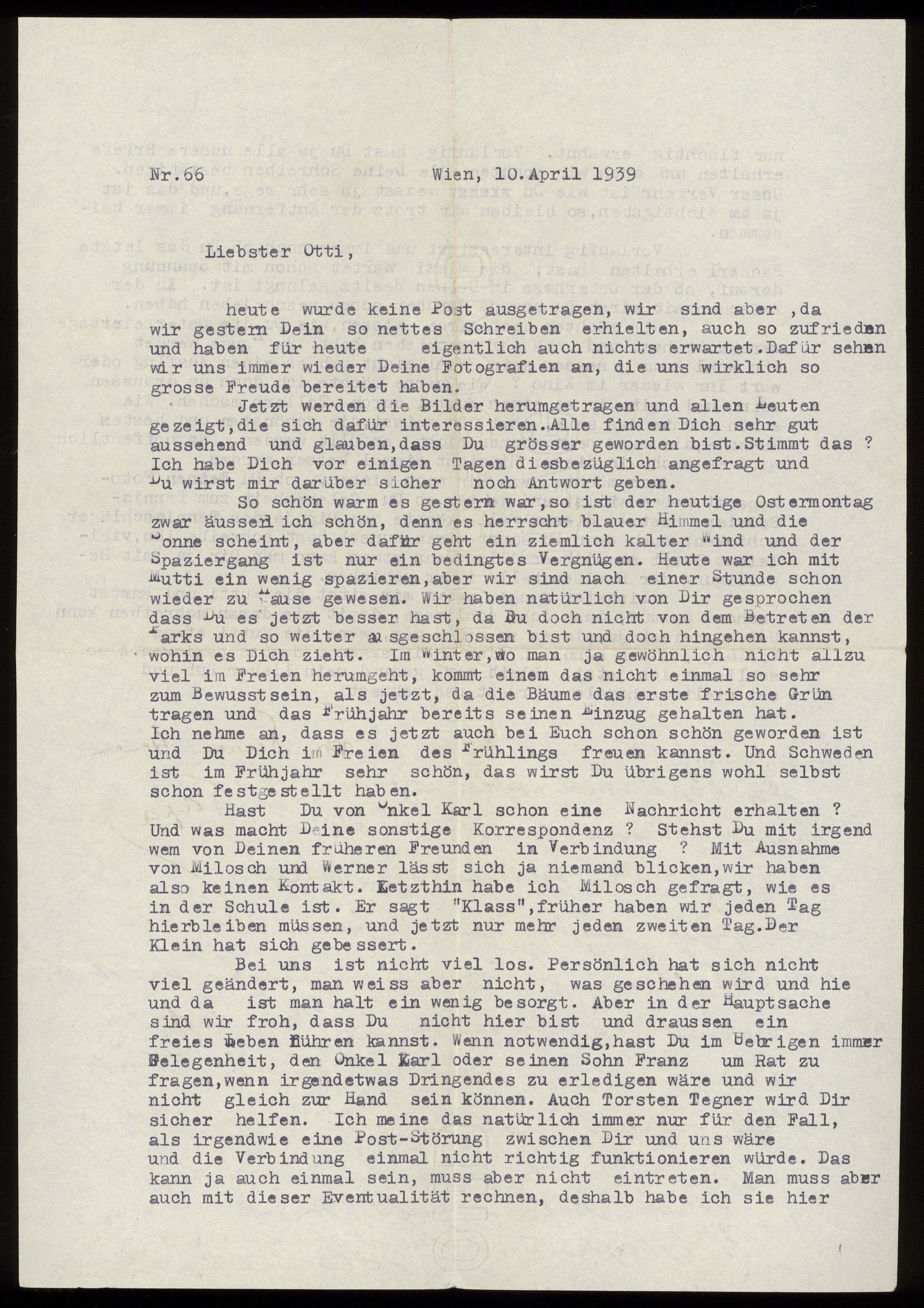 Brev från Elise och Josef Ullman 1939-04-10