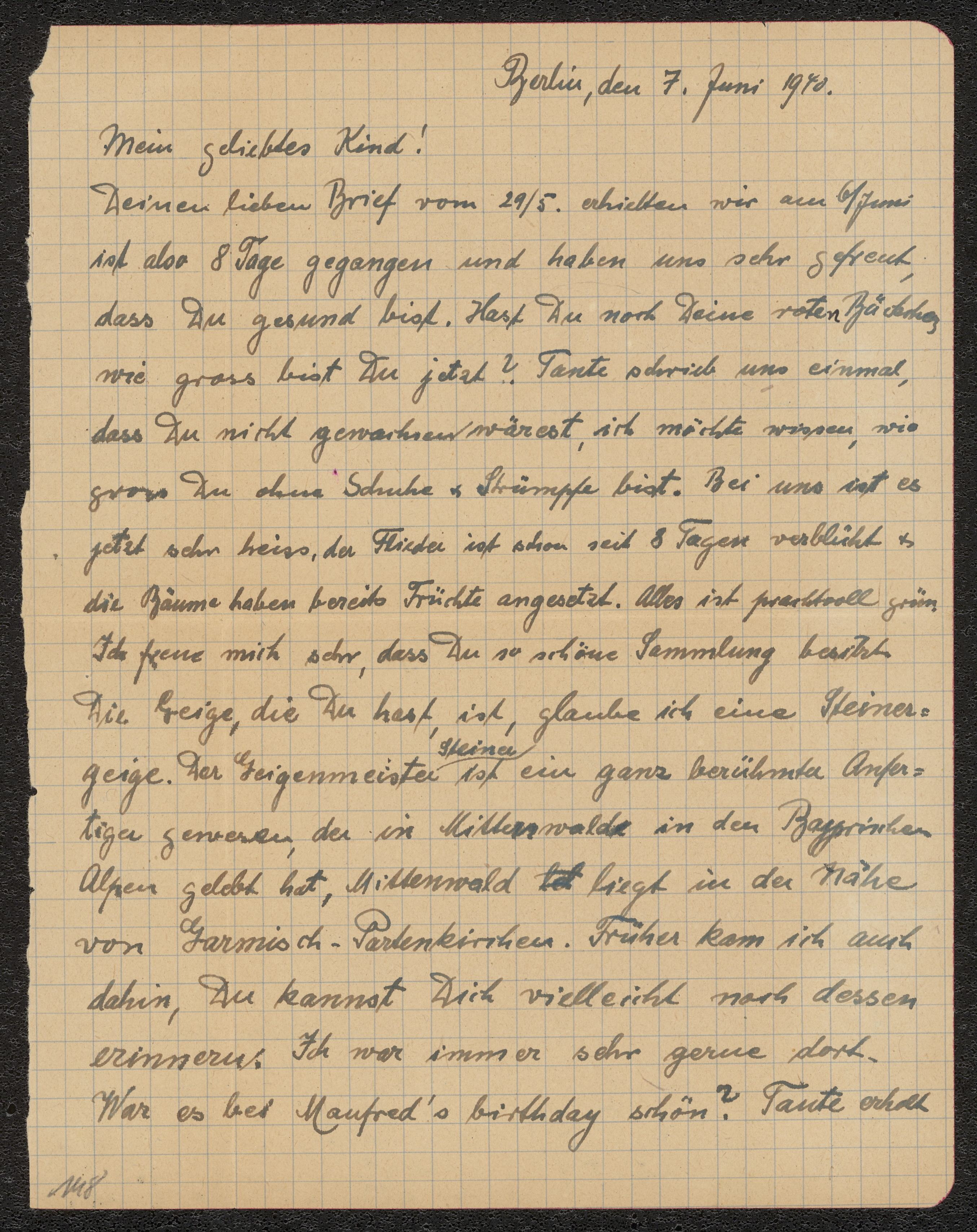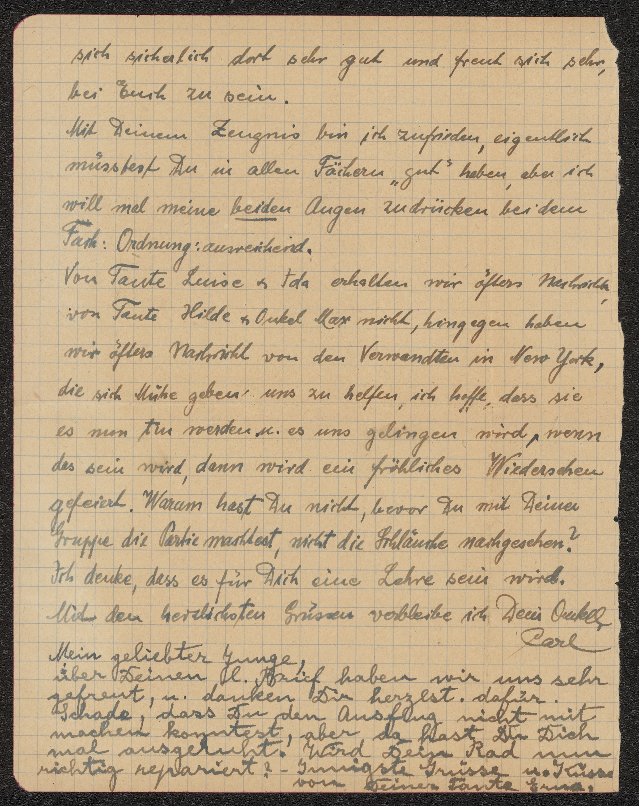 Brev från Onkel Carl och Tante Erna till Ludwig Posner daterat 6 juni 1940.