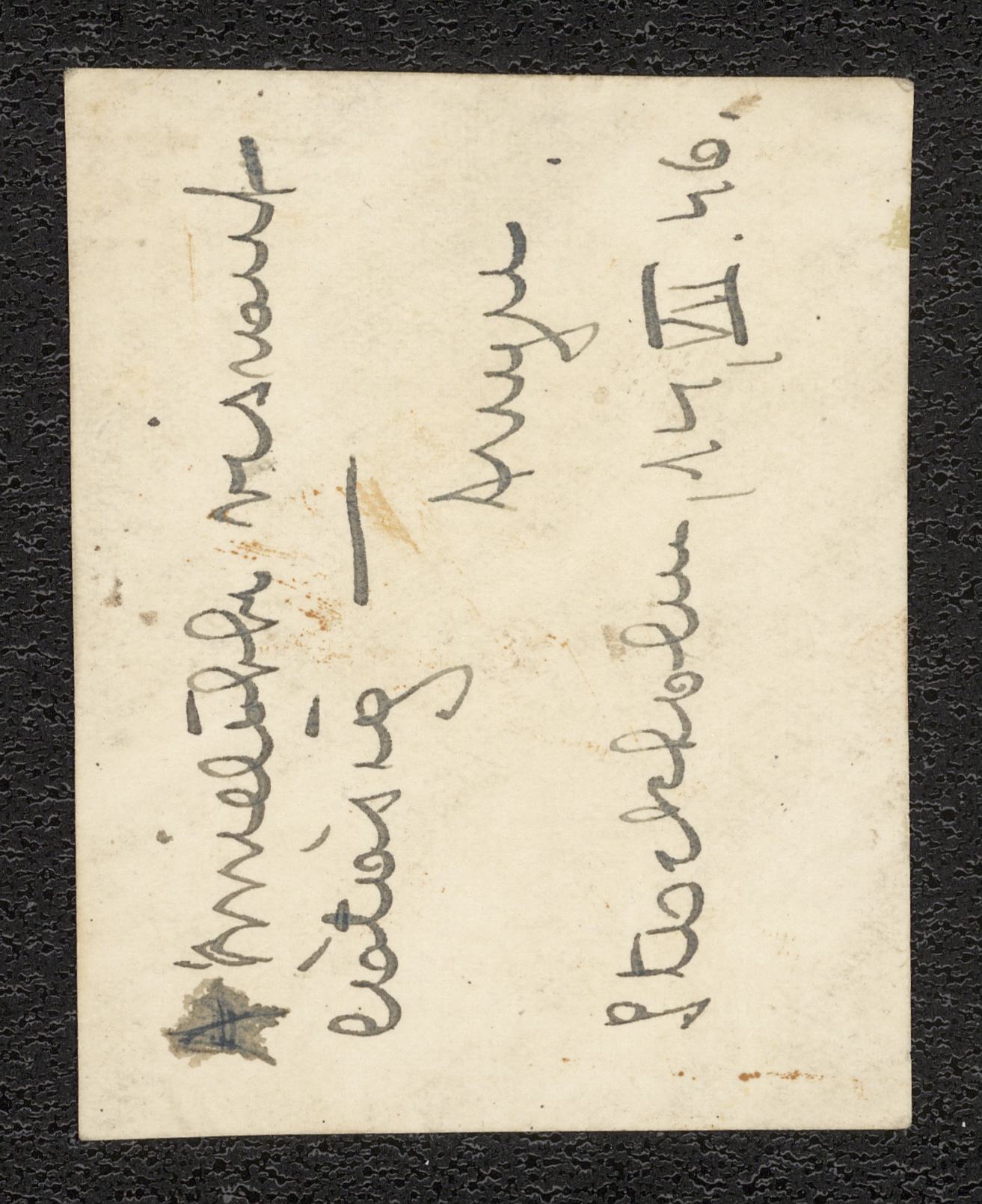 Porträttfotografi av Alice Witt 1946. På baksidan finns text på ungerska, samt texten "Stockholm 14 VII 46