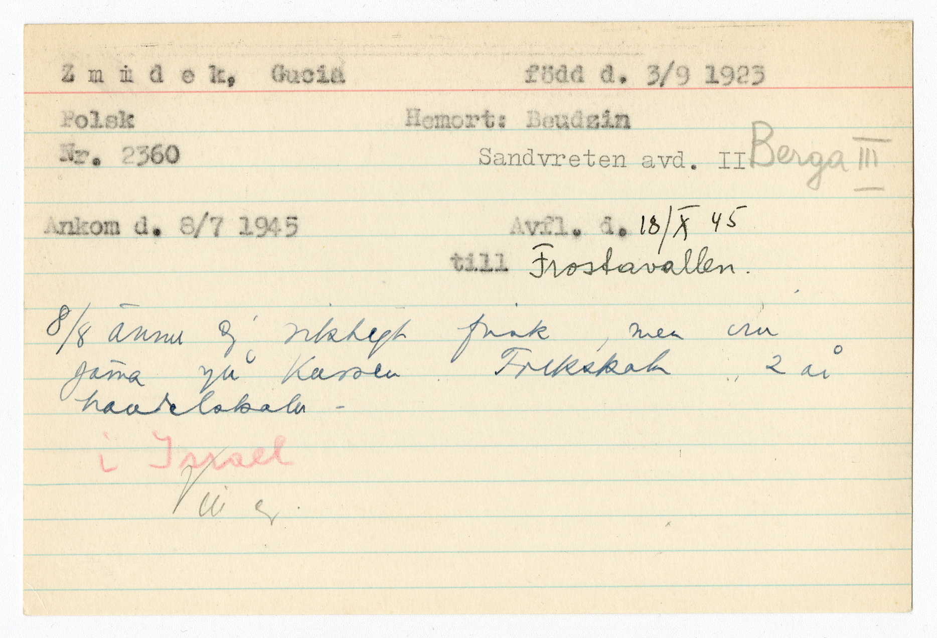Registerkort Gucia Zmidek