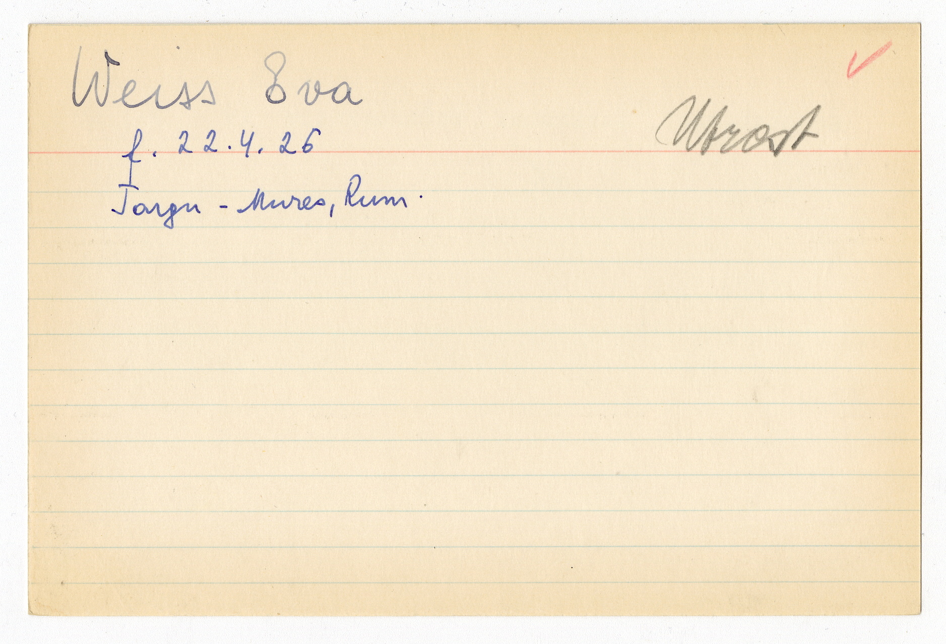 Registerkort Eva Weiss och Marianne Schossberger